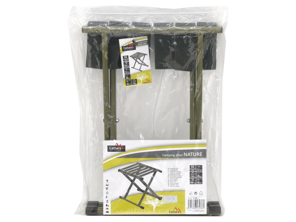 Stolička je ľahko a rýchlo zložiteľná, vybavená dvoma opornými nohami. Rozkladá sa ťahom a napnutím pásov, čím vznikne pohodlné sedadlo.