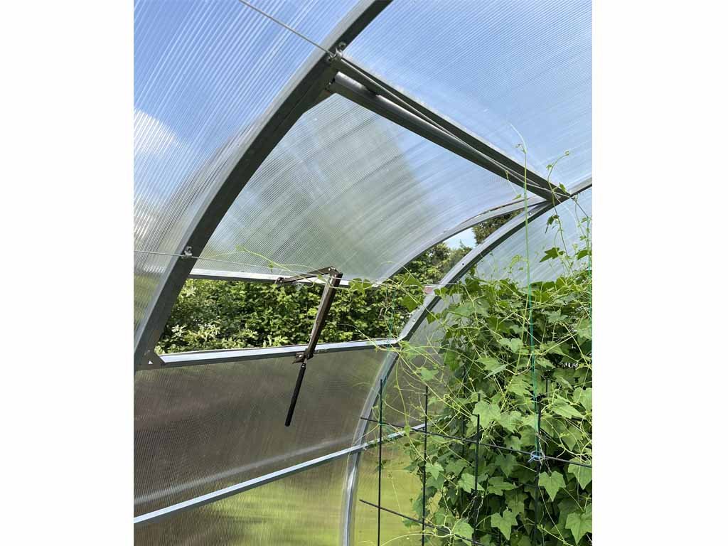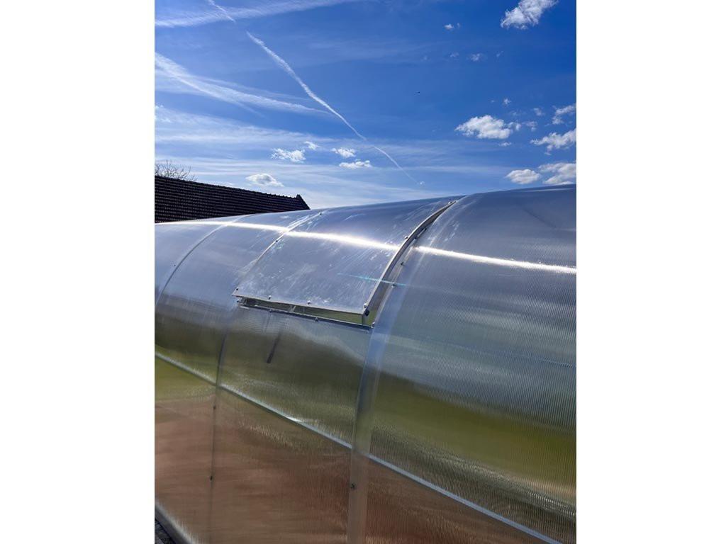 Strešné okno pre všetky modely záhradných skleníkov LEGI dokonale vyvetrá vnútornú plochu skleníka. Odporúčaný počet okien závisí od celkovej dĺžky skleníka. K oknu je možné namontovať automatický otvárač.