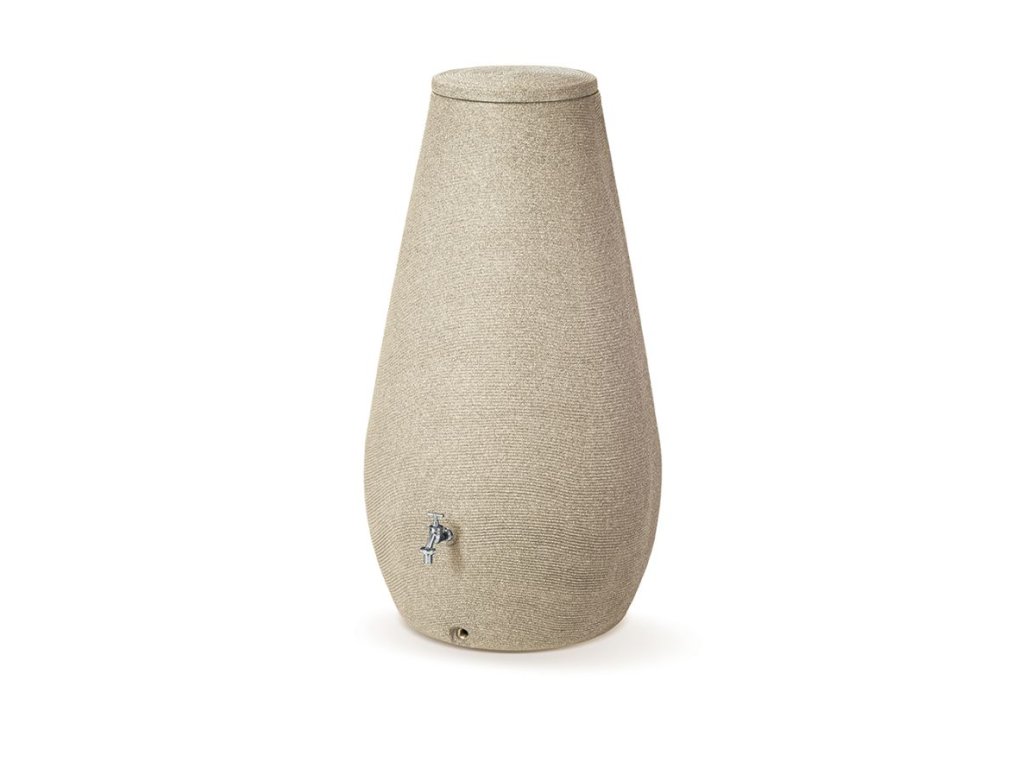 Elegantná nádrž na dažďovú vodu DROP s objemom 410 litrov vo farbe slameného granitu môže byť jednou zo súčastí vášho integrovaného systému úspory vody. Vďaka dažďovej vode je zalievanie záhrady oveľa ekonomickejšie a pre rastliny, ako okrasné a úžitkové aj prospešnejšie. Vďaka obsahu dusíka vo vode sa tento prvok dostáva k rastlinám pre nich prirodzenou formou. Dažďová voda neobsahuje chlór, žiadne soli vápnika a horčíka, čo sú chemické látky, ktoré spôsobujú trvalú alebo dočasnú tvrdosť vody. Aj preto je vhodná pre kvapkové závlahy, ktoré sa nezanášajú a lepšie fungujú.