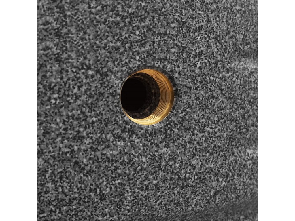 Nádrž je vyrobená z kvalitného plastu, ktorý je odolný voči poveternostným vplyvom. Najväčšou prednosťou tejto nádrže na vodu je jej elegantné prevedenie, použité kvalitné materiály a predovšetkým jej praktickosť. Nádrž je na odnímateľnom veku vybavená detskou poistkou a vo svojej spodnej časti je osadená otvorom s 3/4" mosadzným závitom pre napojenie kohútika ITAP (súčasťou balenia). Nádrž má tiež dva bočné odtoky kúsok od zeme pre napojenie hadice na vodu, alebo pre úplné vypustenie nádrže. Konštrukčne je tento typ suda tzv. fúkaný, aby bol na rovnom povrchu dobre stabilný, a teda nie je potreba podstavec. Povrchová úprava pripomína kameň, takže sa ľahko prispôsobí fasádam moderných domov.