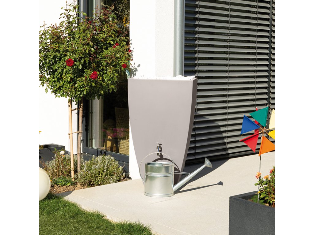 Moderná nádrž na dažďovú vodu Modena tvare kvetináča je vyrobená z kvalitného plastu, ktorý je odolný voči poveternostným vplyvom. V hornej časti je vkladacia doska, v ktorej je namontovaný integrovaný filtračný kôš. Pre krajší vzhľad je možné stielku individuálne ozdobiť štrkom. Odkvap s nádržou je možné jednoducho prepojiť predpripravenými plochami pomocou spojovacieho systému Waterform Icanset, ktorý zakúpite v našom e-shope. Najväčšou prednosťou tejto nádrže na vodu je jej elegantné prevedenie, použité kvalitné materiály a predovšetkým jej praktickosť. Nádrž je možné plniť zhora cez klasickú dažďovú klapku alebo z boku V spodnej časti je osadená otvorom s 3/4" mosadzným závitom pre napojenie kohútika ITAP (nie je súčasťou balenia). Nádrž má tiež dva bočné odtoky kúsok od zeme pre napojenie hadice na vodu, alebo pre úplné vypustenie nádrže. Konštrukčne je tento typ suda tzv. fúkaný, aby bol na rovnom povrchu dobre stabilný, a teda nie je potreba podstavec. Minimalistický vzhľad sa hodí do moderných interiérov a záhrad.