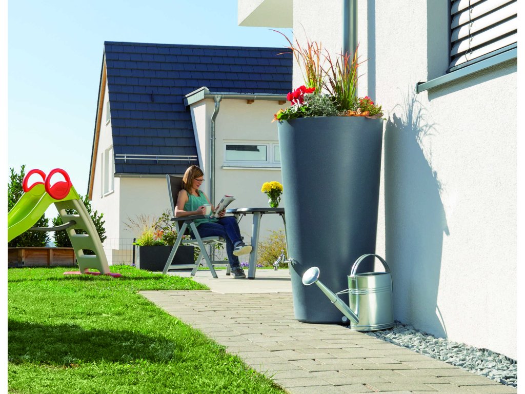Sud na dažďovú vodu Rainbowl Flower s objemom 150 litrov v antracitovej farbe môže byť jednou zo súčastí vášho integrovaného systému úspory vody. Vďaka dažďovej vode je zalievanie záhrady oveľa ekonomickejšie a pre rastliny, ako okrasné a úžitkové aj prospešnejšie. Vďaka obsahu dusíka vo vode sa tento prvok dostáva k rastlinám pre nich prirodzenou formou. Dažďová voda neobsahuje chlór, žiadne soli vápnika a horčíka, čo sú chemické látky, ktoré spôsobujú trvalú alebo dočasnú tvrdosť vody. Aj preto je vhodná pre kvapkové závlahy, ktoré sa nezanášajú a lepšie fungujú.