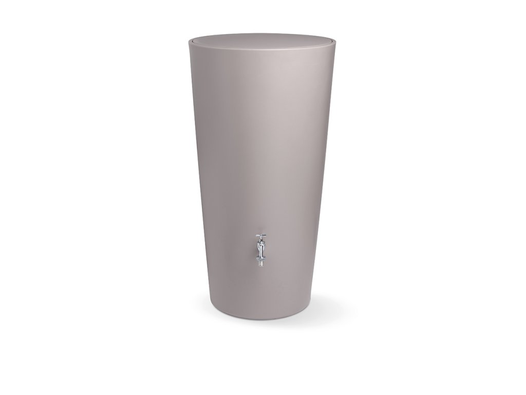 Moderná nádrž na dažďovú vodu Rainbowl v tvare vázy je vyrobená z kvalitného plastu, ktorý je odolný voči poveternostným vplyvom. Odkvap s nádržou je možné jednoducho prepojiť predpripravenými plochami pomocou spojovacieho systému Waterform Icanset, ktorý zakúpite v našom e-shope. Najväčšou prednosťou tejto nádrže na vodu je jej elegantné prevedenie, použité kvalitné materiály a predovšetkým jej praktickosť. Nádrž je na odnímateľnom veku vybavená detskou poistkou a vo svojej spodnej časti je osadená otvorom s 3/4" mosadzným závitom pre napojenie kohútika ITAP (nie je súčasťou balenia). Nádrž má tiež dva bočné odtoky kúsok od zeme pre napojenie hadice na vodu, alebo pre úplné vypustenie nádrže. Konštrukčne je tento typ suda tzv. fúkaný, aby bol na rovnom povrchu dobre stabilný, a teda nie je potreba podstavec. Povrchová úprava pripomína tmavo šedý betón, takže sa ľahko prispôsobí fasádam moderných domov.