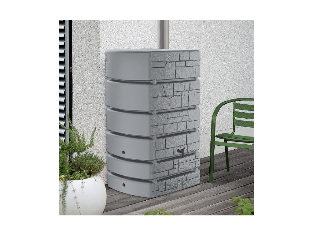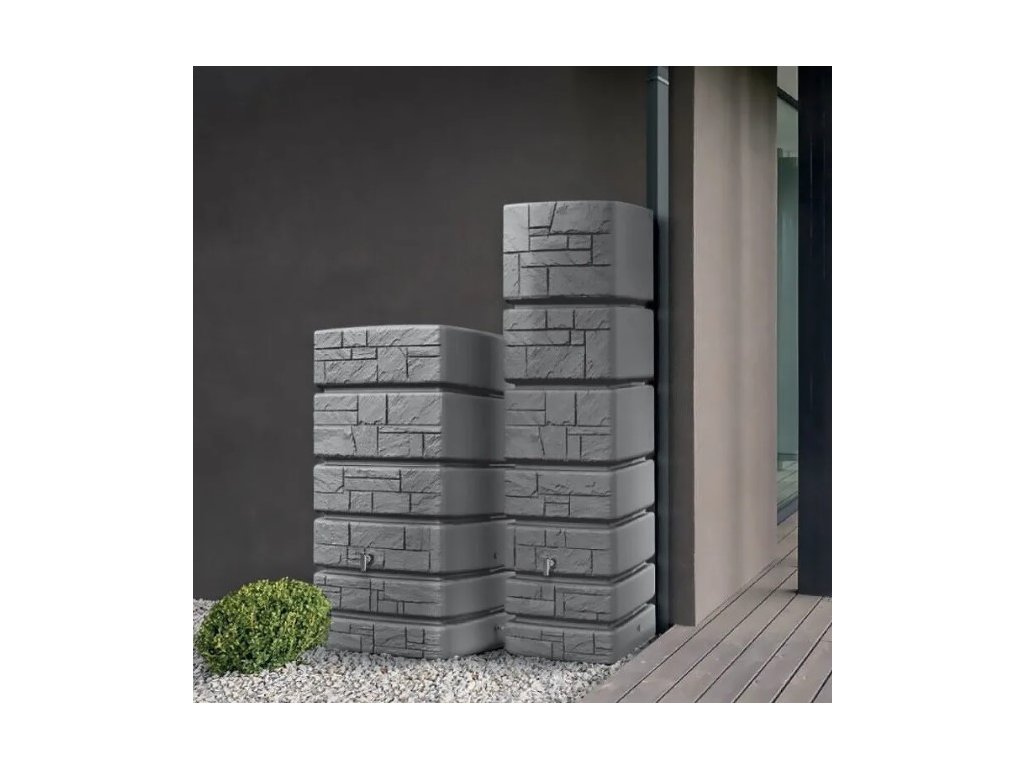 Moderná nádrž na dažďovú vodu Tower Stone je dekoratívna nádrž, ktorej predná strana je zdobená imitáciou bridlicového obkladu. Je vyrobená z kvalitného plastu, ktorý je odolný voči poveternostným vplyvom. Odkvap s nádržou je možné jednoducho prepojiť predpripravenými plochami pomocou spojovacieho systému Waterform Icanset, ktorý zakúpite v našom e-shope. Najväčšou prednosťou tejto nádrže na vodu je jej elegantné prevedenie, použité kvalitné materiály a predovšetkým jej praktickosť. Nádrž je na odnímateľnom veku vybavená detskou poistkou a vo svojej spodnej časti je osadená otvorom s 3/4" mosadzným závitom pre napojenie kohútika ITAP (nie je súčasťou balenia). Nádrž má tiež dva bočné odtoky kúsok od zeme pre napojenie hadice na vodu, alebo pre úplné vypustenie nádrže. Konštrukčne je tento typ suda tzv. fúkaný, aby bol na rovnom povrchu dobre stabilný, a teda nie je potreba podstavec. Kamenný vzhľad sa skvele hodí do moderných interiérov a záhrad v súlade s trendmi v súčasnej architektúre.