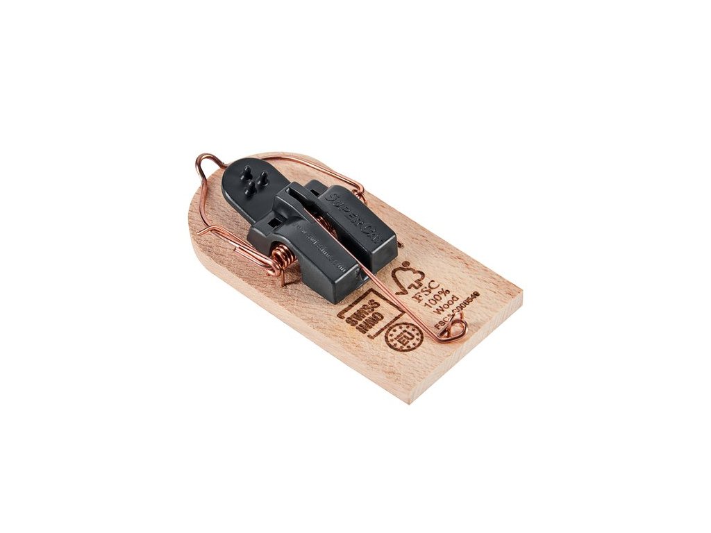 Swissinno SuperCat je drevená pasca na myši vyrobená výhradne zo starostlivo obrábaných lesných porastov. Patentovaná výbava umožní, že pasca je jednoducho zostaviteľná a bezpečná. Vylučuje problematické a často nebezpečné zostavenie ako to býva u bežných pascí. Návnada sa ukladá do špeciálne vytvarovaného držiaka návnady, ktorý uľahčí použitie všetkých typov návnad, syr, slanina, čokoláda atď. Držiak návnady je umiestnený centrálne do polkruhu, myš je chytená s optimálnym účinkom, a nezáleží z ktorého smeru do pasce vstúpi. Kostra pasce je vyrobená z certifikovaného dreva FSC. Logo FSC zaistí jedinečný švajčiarsky dizajn s účinným mechanizmom pre optimálny účinok a humánne zabitie. Pasca na myši je určená pre vnútorné aj vonkajšie použitie.