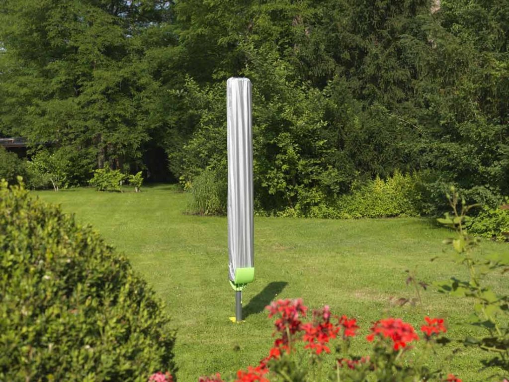 Sušiak je chránený špeciálnym vstavaným ochranným obalom. Ten zaistí, že šnúry sú vždy čisté a pripravené na zavesenie bielizne. Vzhľadom na to, že je obal vstavaný nemusíte riešiť kam vak uschovať počas sušenia, len ho pred použitím stiahnete do nosnej rúrky a po zložení sušiaku ho zase vytiahnete. Farba vaku je strieborná.