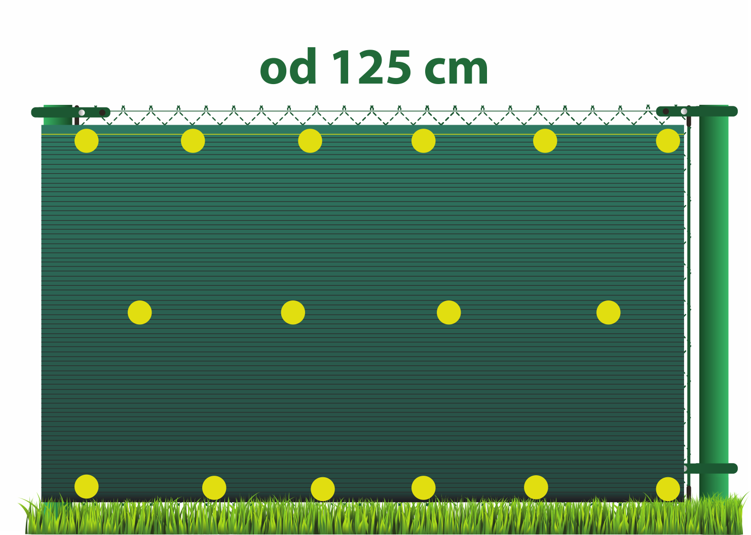 Na obrázkoch si ďalej môžete prezrieť odporúčané umiestnenie sťahovacích pások podľa výšky tkaniny tak, aby bolo uchytenie dostatočne pevné: