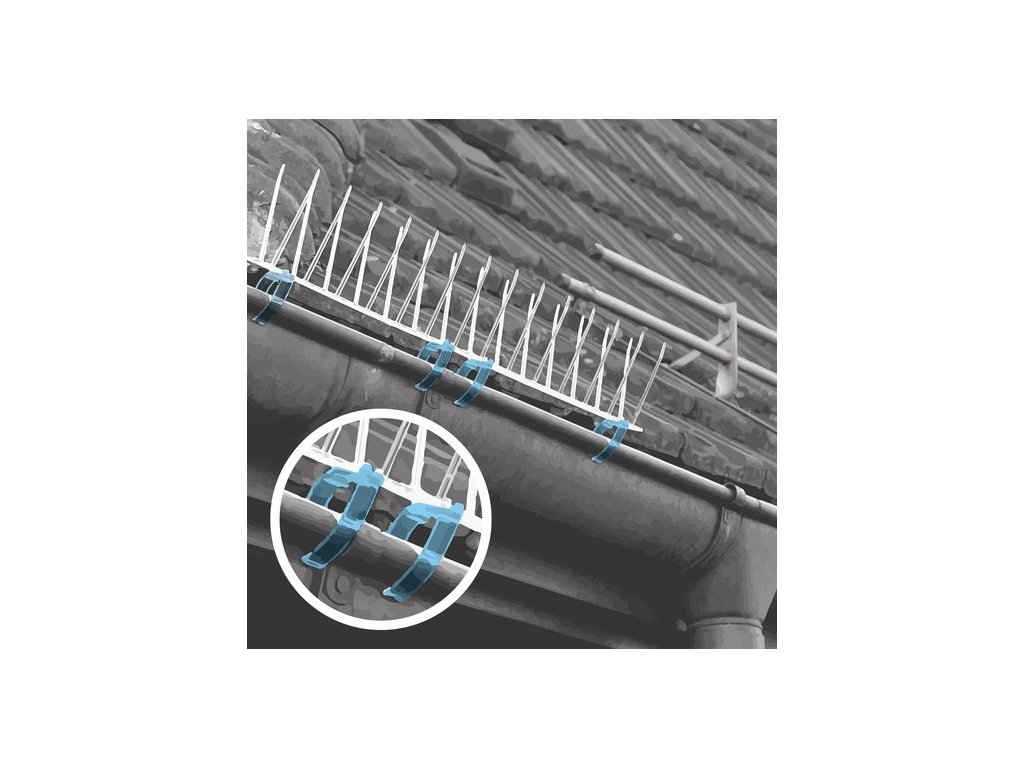 Vďaka týmto úchytom môžete nainštalovať hroty k akémukoľvek odkvapu a vyhnúť sa tak lepeniu hrotov. Na jeden hrot s dĺžkou 33,2 cm potrebujete 3–4 úchyty.