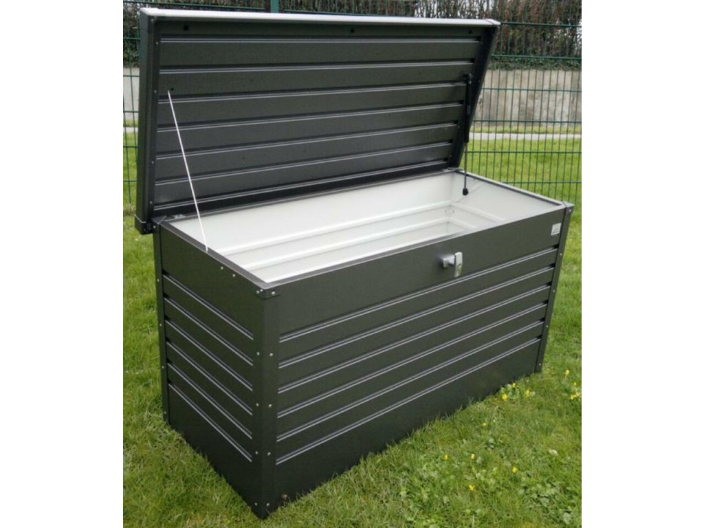 Štýlový úložný box FreizeitBox prémiovej kvality, ktorý vyhovuje aj nárokom modernej architektúry je ideálny na uloženie sedákov, lehátok, skladacích stoličiek, hračiek, športových a kempingových doplnkov. Box je široký 101 cm a 46 cm hlboký. Úložné boxy FreizeitBox ponúkame v piatich farebných prevedeniach a štyroch veľkostiach. Vďaka tomu sa môže stať FreizetBox aj dizajnovým prvkom na vašej záhrade, terase, pri bazéne alebo v pergole.