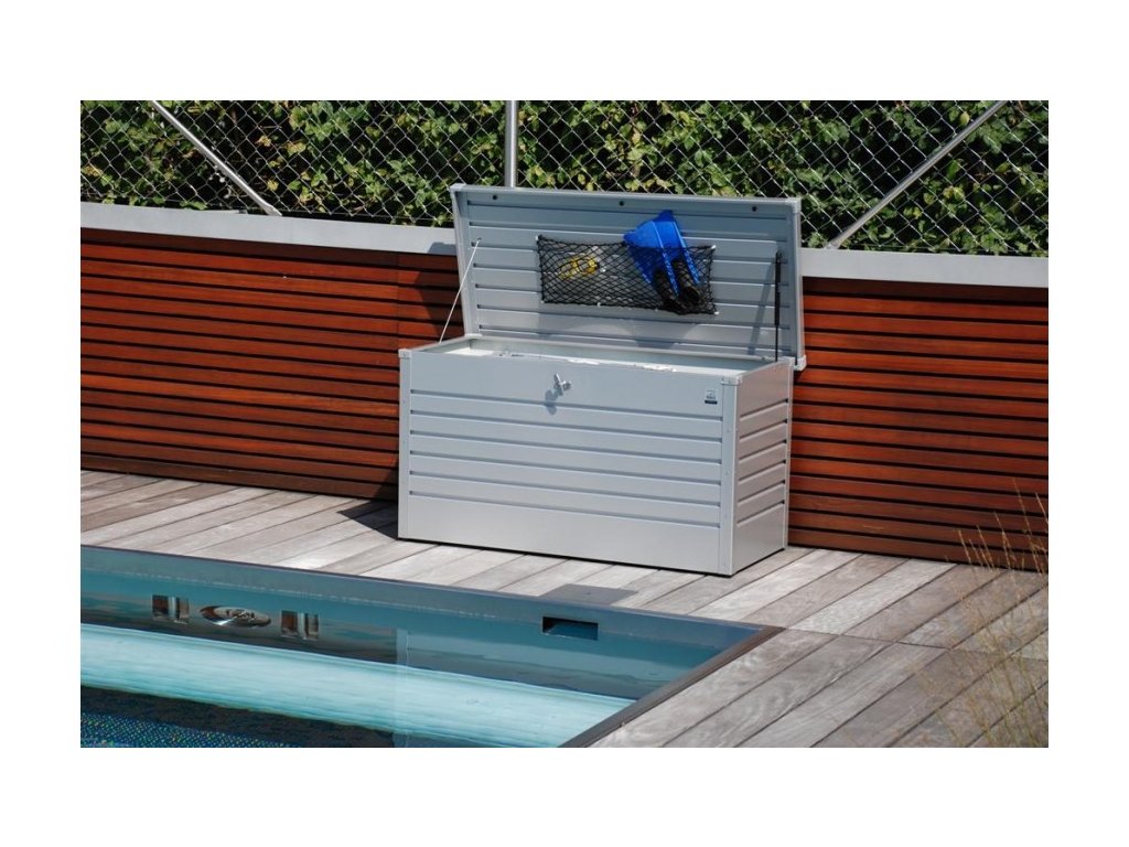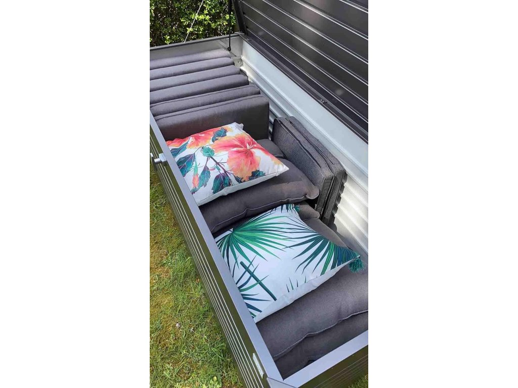 Štýlový úložný box FreizeitBox prémiovej kvality, ktorý vyhovuje aj nárokom modernej architektúry je ideálny na uloženie sedákov, lehátok, skladacích stoličiek, hračiek, športových a kempingových doplnkov. Box je široký 181 cm a 79 cm hlboký. Úložné boxy FreizeitBox ponúkame v piatich farebných prevedeniach a štyroch veľkostiach. Vďaka tomu sa môže stať FreizetBox aj dizajnovým prvkom na vašej záhrade, terase, pri bazéne alebo v pergole.