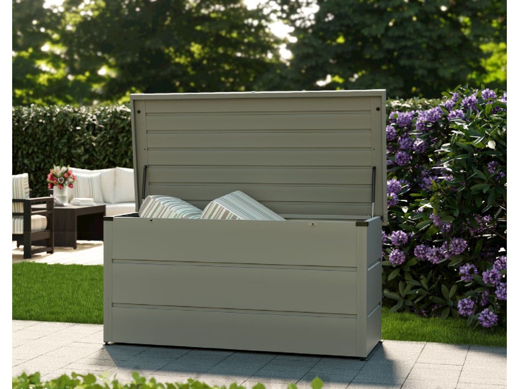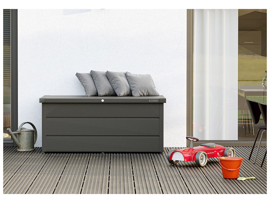 Box môžete nechať po celý rok vonku, je vodeodolný, s neviditeľnou integrovanou ventiláciou. Vďaka tomu uskladnené veci nepodliehajú plesniam. Môžete v nich skladovať aj podušky a poťahový materiál pre záhradný nábytok. Box môžete umiestniť na balkón, terasu, k záhradnému bazénu, do záhradného domčeka alebo garáže.