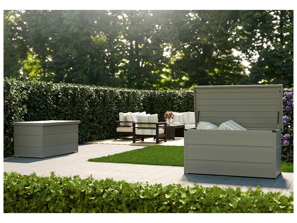 Box môžete nechať po celý rok vonku, je vodeodolný, s neviditeľnou integrovanou ventiláciou. Vďaka tomu uskladnené veci nepodliehajú plesniam. Môžete v nich skladovať aj podušky a poťahový materiál pre záhradný nábytok. Box môžete umiestniť na balkón, terasu, k záhradnému bazénu, do záhradného domčeka alebo garáže.