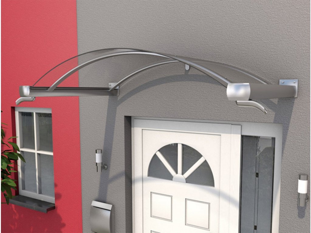 Moderná oblúková strieška nad vchodové dvere Guttavordach BV/B 200 × 90 cm skrášli priestor vstupu do vášho domu a súčasne je dokonalou ochranou vašich dverí pred dažďom, snehom a vetrom. Zvýšený komfort vám zaistí integrovaný odkvapový žľab s chrličom vody po oboch stranách. Je vhodná na zastrešenie vchodov, balkónov, výloh obchodov, alebo napríklad na zastrešenie nad bankomatmi.