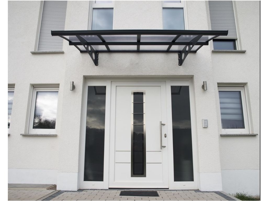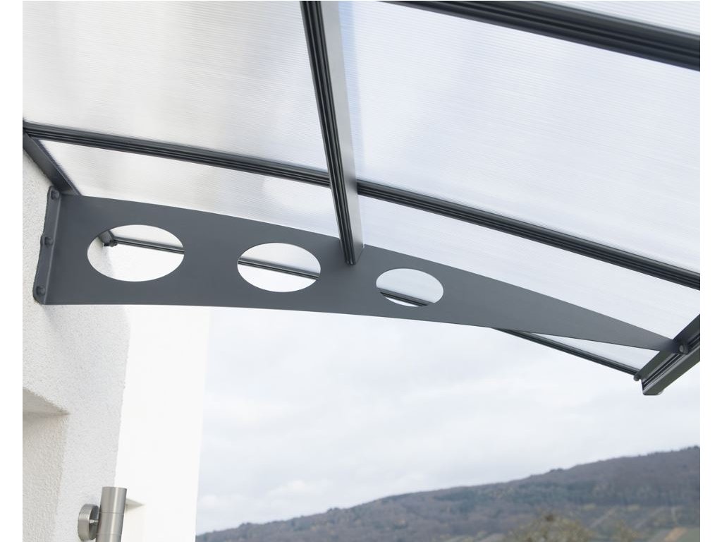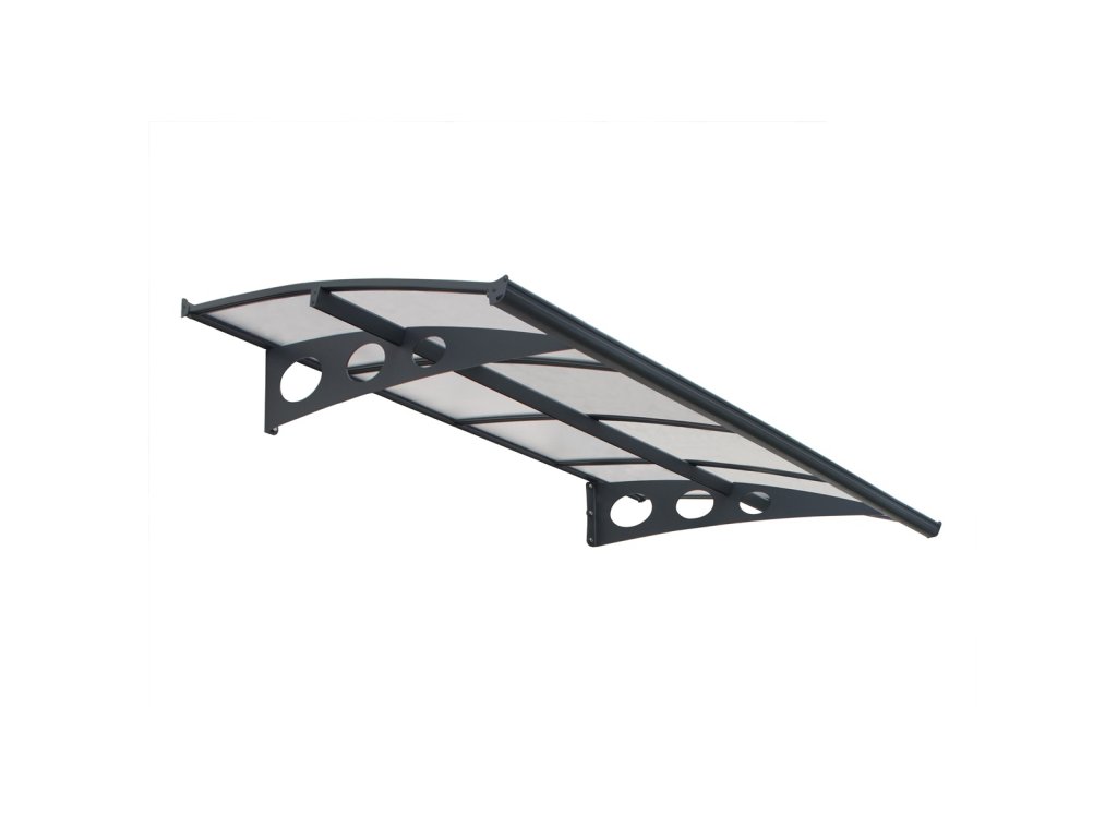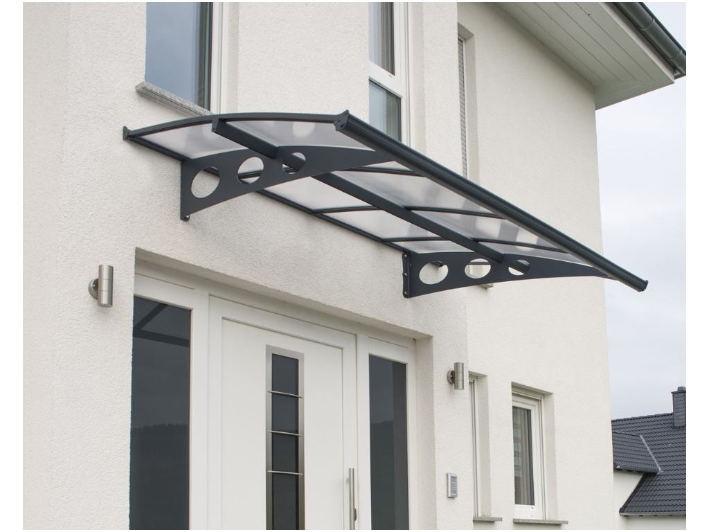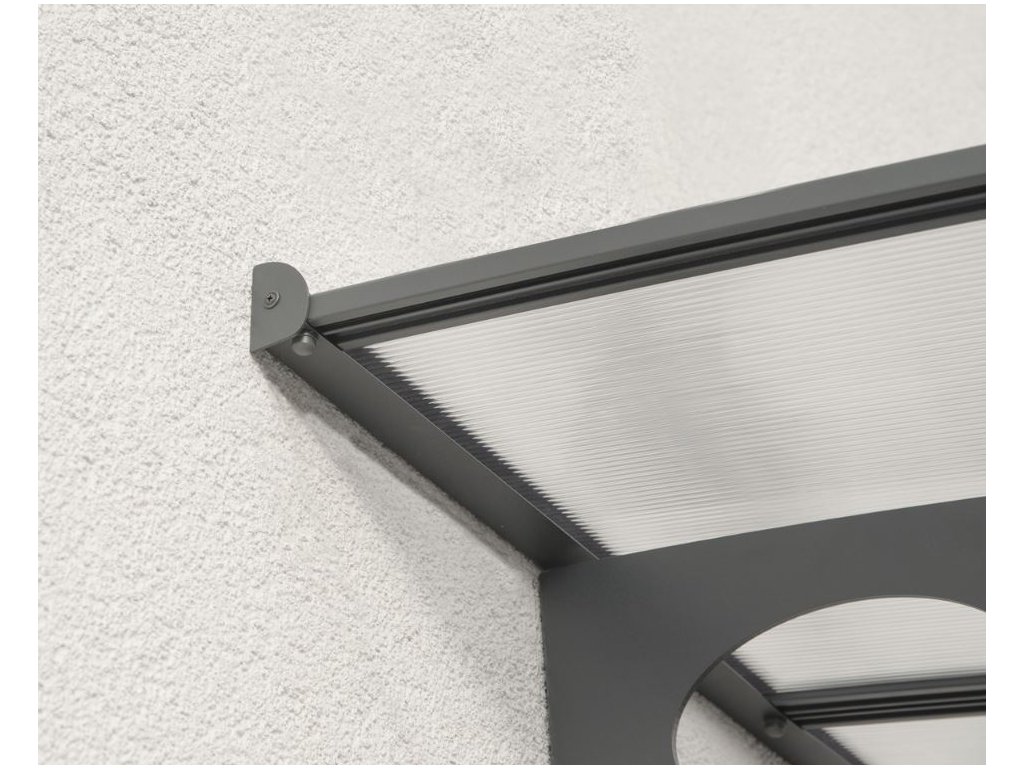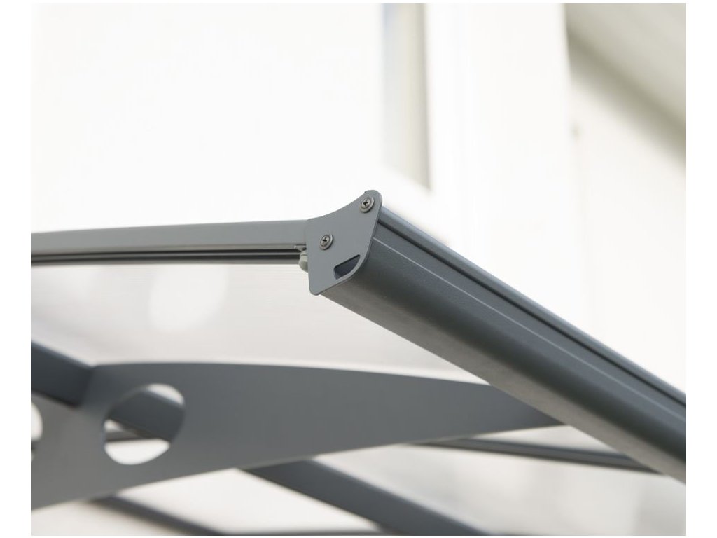 Pultová strieška Herald 2230, jednoduchá a elegantná vchodová strieška je dokonalou ochranou dverí pred dažďom, snehom a vetrom. Ľahké zastrešenie pripravené na samostatnú montáž bez potreby použitia dodatočných pomocných podpier. Odolné nerezové hliníkové profily. Práškované a pozinkované oceľové podpery. Tvar predného profilu a zadné skryté tesnenie zabezpečujú pri daždi odvod vody do bočných strán.