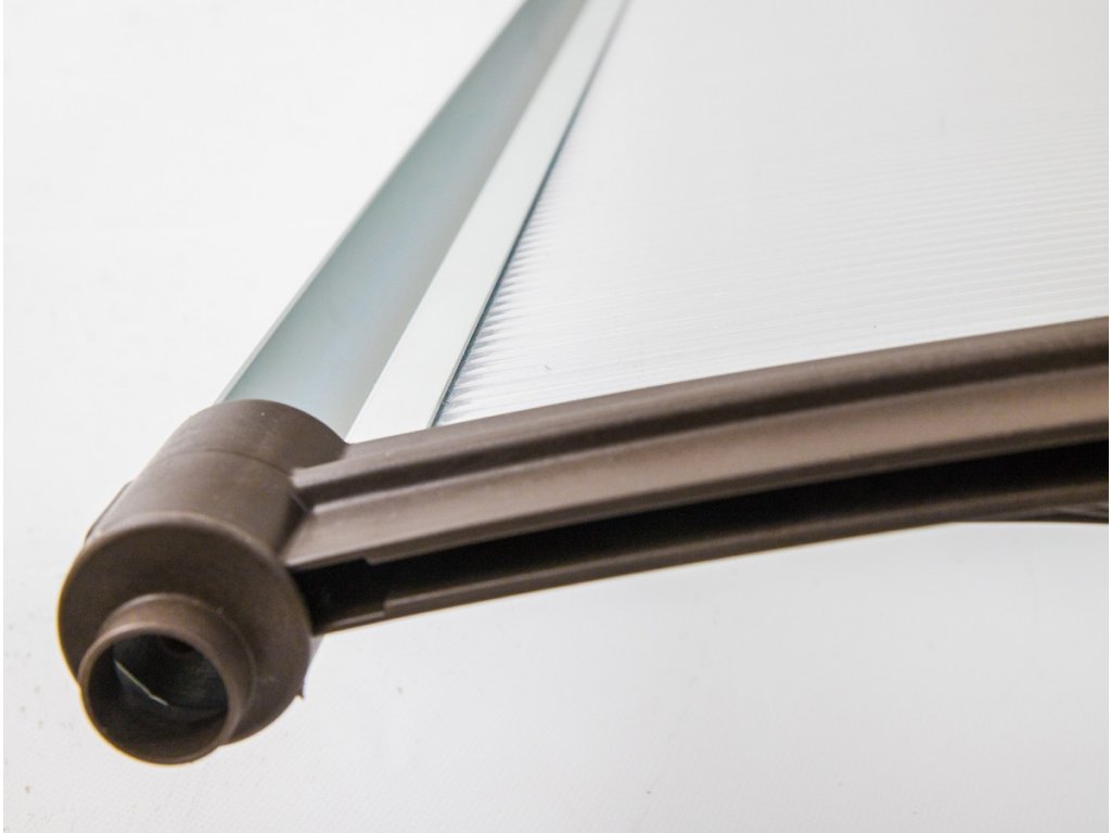 Striešku ponúkame v rozmeroch - šírka 1500 mm x hĺbka 820 mm a farebnej kombinácii - hnedé profily + zasklenie bronzovým dutinkovým polykarbonátom 6 mm.