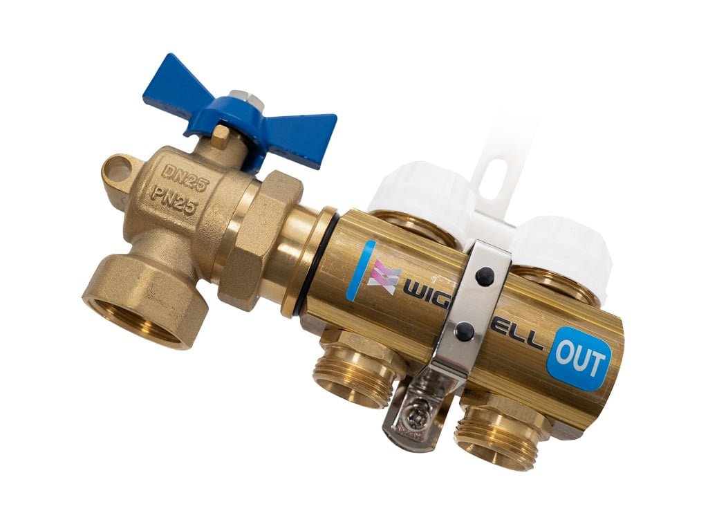 Balenie obsahuje 2 guľové ventily (1 x červený + 1 x modrý). Teplomer nie je súčasťou balenia.