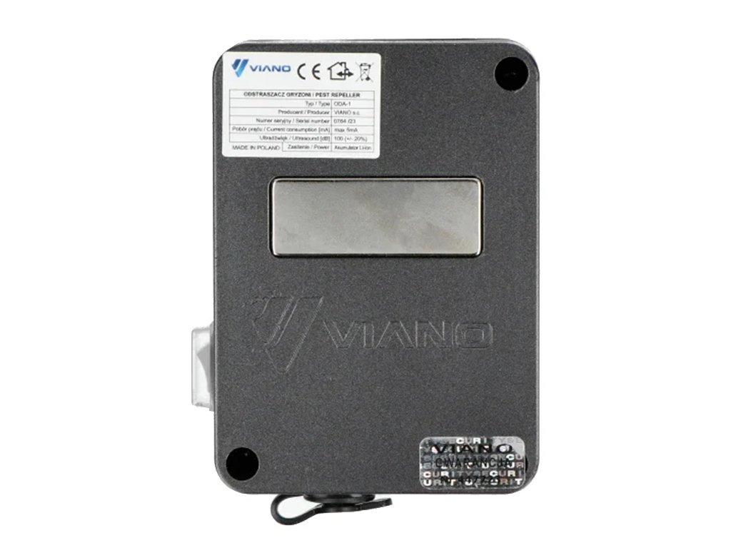 Výkonný ultrazvukový odpudzovač VIANO ODA-1 s dobíjateľnou batériou 4000 mAh je ideálny na odpudzovanie kún, myší, potkanov a ďalších hlodavcov. Pokryje plochu až 2000 m² s uhlom šírenia ultrazvuku 120°. Disponuje piezoelektrickým reproduktorom a moduláciou frekvencie, ktorá zabraňuje, aby si škodcovia na zvuk zvykli. Krytie IP65 zaisťuje vodotesnosť, mrazuvzdornosť a UV ochranu, takže ho možno používať v interiéri aj exteriéri. Vďaka neodýmovému magnetickému držiaku je inštalácia jednoduchá aj na kovové povrchy, pričom súčasťou balenia je aj doštička na uchytenie na nekovové materiály.