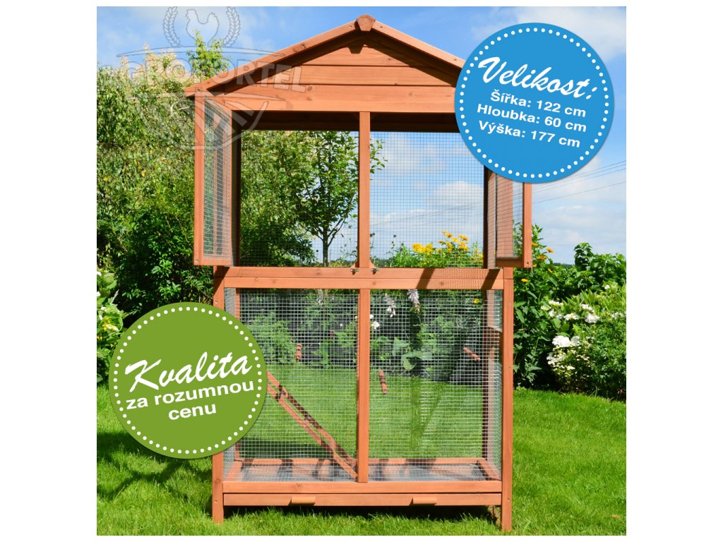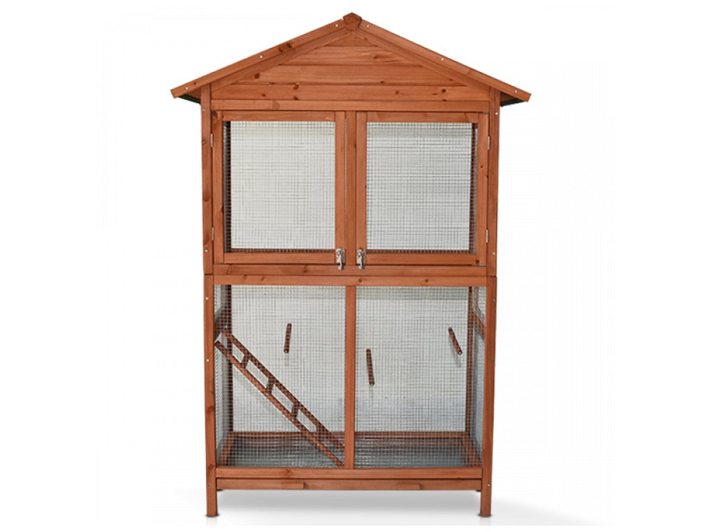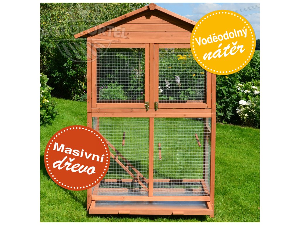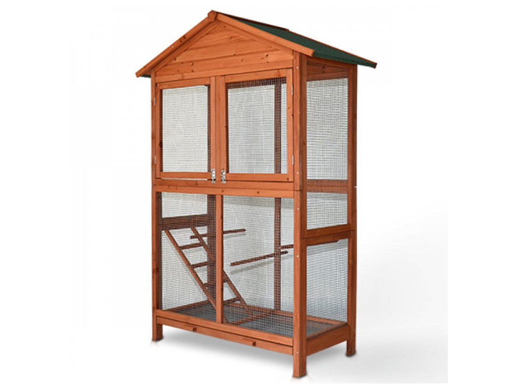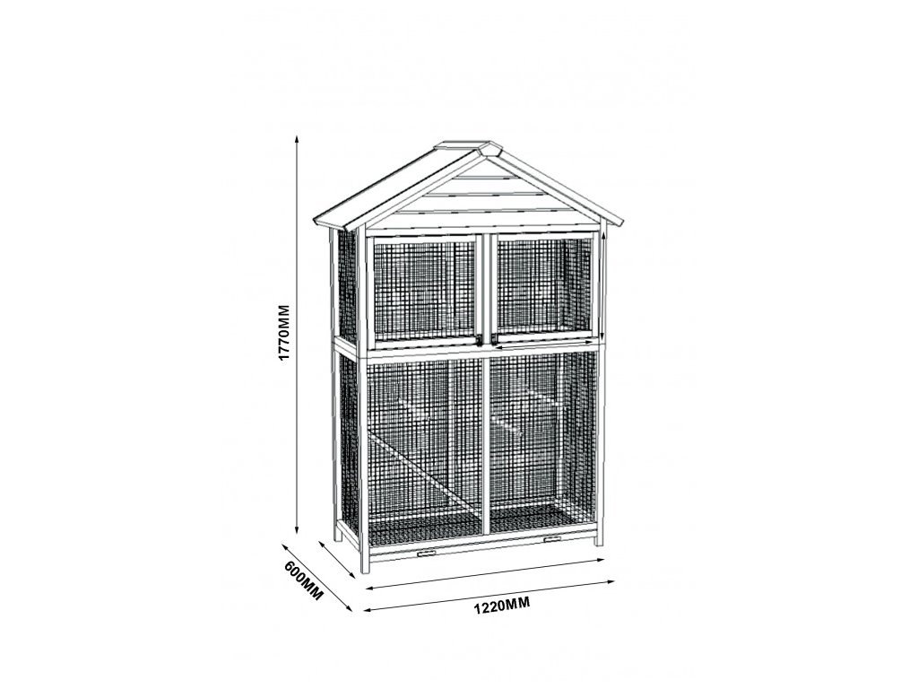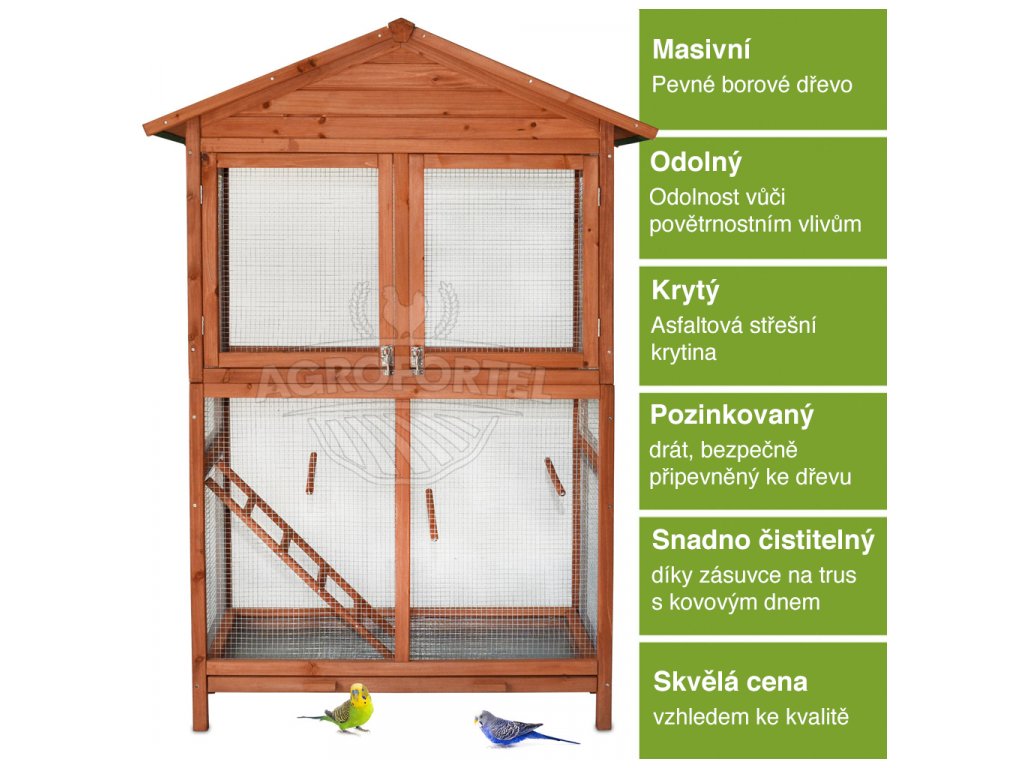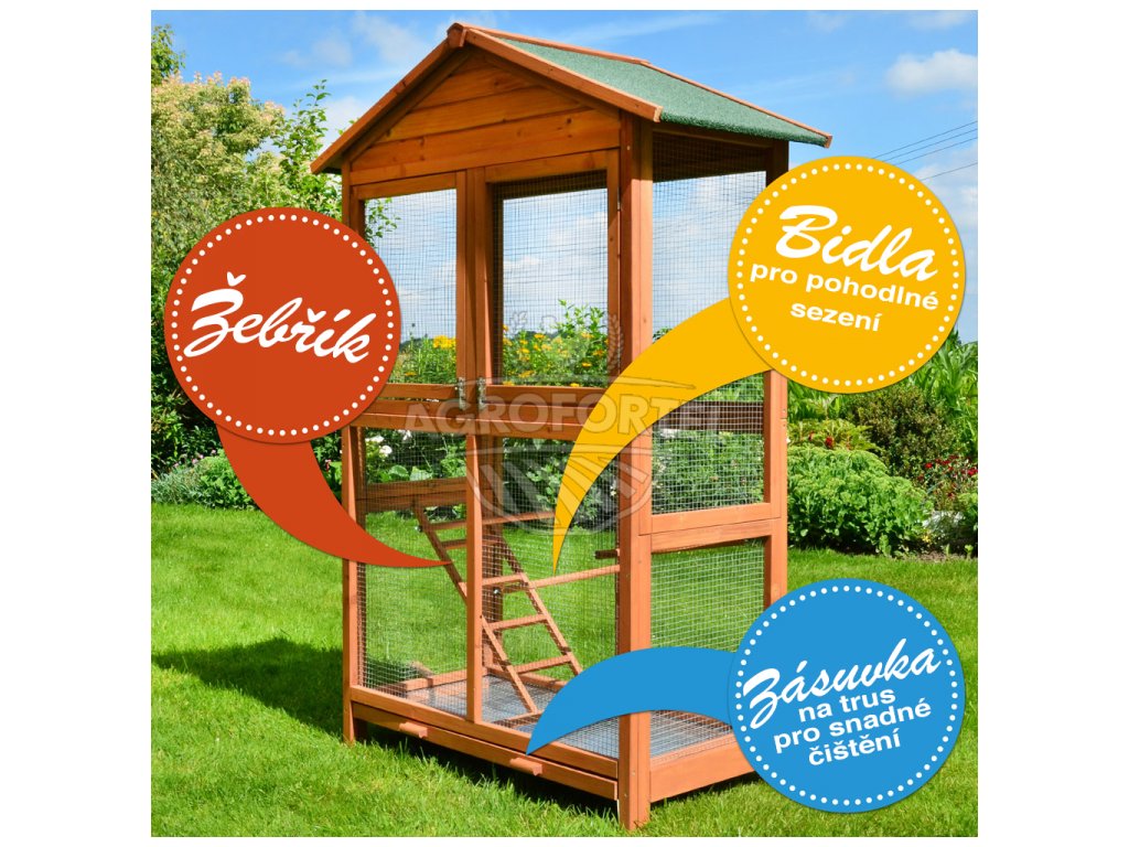 Voliéra z vysoko kvalitného dreva poskytuje dostatočnú ochranu proti slnku, dažďu a škodcom. Tento domov pre vtáky je ideálny pre malé druhy, ako sú kanáriky, andulky alebo pĕnkavy. Vďaka svojmu robustnému a estetickému dizajnu sa perfektne hodí do záhrady aj do interiéru.