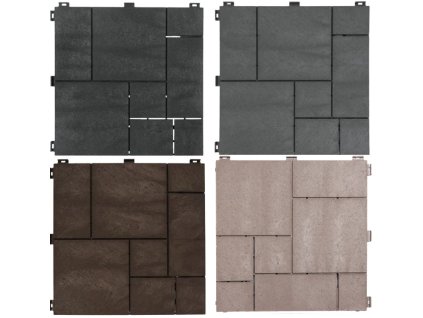Gumená terasová dlaždica Multy Home Stone Mosaic v elegantnom dizajne, v hnedej farbe. Vyrobená zo zmesi gumového recyklátu a polypropylénu, čo zaručuje vysokú odolnosť a...