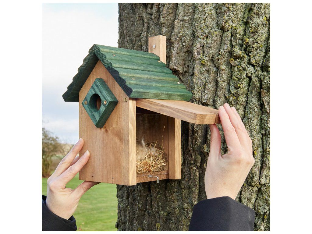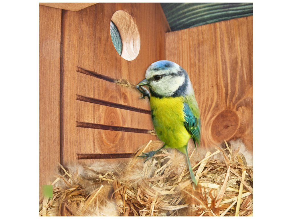 Na vnútornej strane búdky sa nachádzajú drážky, ktoré mláďatám uľahčujú výlez k výstupnému otvoru. Vďaka predvŕtanému otvoru na zavesenie možno búdku jednoducho zavesiť vo vašej záhrade. Hniezdne búdky sú oveľa viac než len hniezdiská – poskytujú záhradným vtákom ideálny úkryt aj počas chladného obdobia a podporujú biodiverzitu vo vašej záhrade.