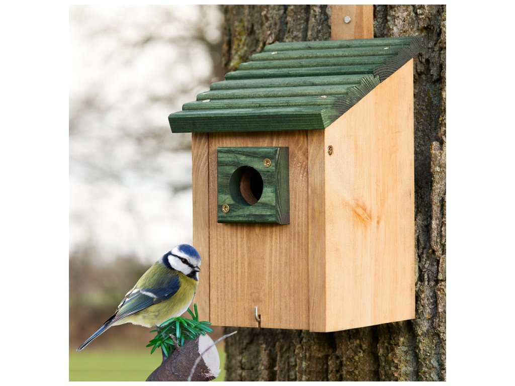 Toto krásne hniezdisko má na vnútornej strane drážky, ktoré mláďatám uľahčujú výlez k výstupnému otvoru. Vďaka predvŕtanému otvoru na zavesenie môžete vtáčiu búdku jednoducho umiestniť vo svojej záhrade. Hniezdne búdky sú oveľa viac než len miesta na hniezdenie – poskytujú vtákom ideálny úkryt aj počas chladných období a prispievajú k biodiverzite vašej záhrady.