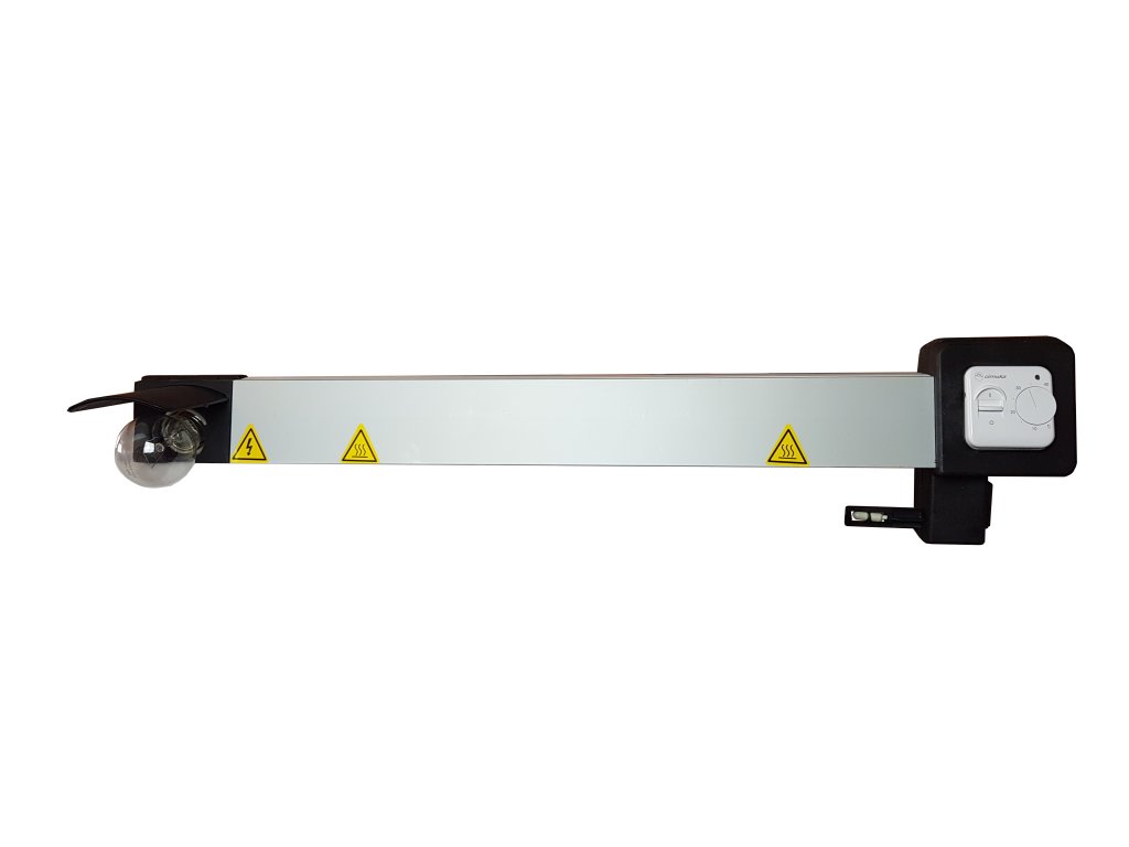 Výhrevná časť jednotky je samozrejme vybavená ochranným krytom, ktorý zabraňuje kontaktu mláďat s výhrevnými káblami a nehrozí riziko popálenia. Výhrevná jednotka ďalej ponúka možnosť stáleho zdroja svetla pomocou žiarovky (nie je súčasťou balenia). Potrebný výkon žiarovky sa určuje v závislosti od teploty v miestnosti, kde bude odchovňa umiestnená, a nesmie byť vyšší ako 75 W. Rozmery produktu: 69 × 15 × 14 cm.