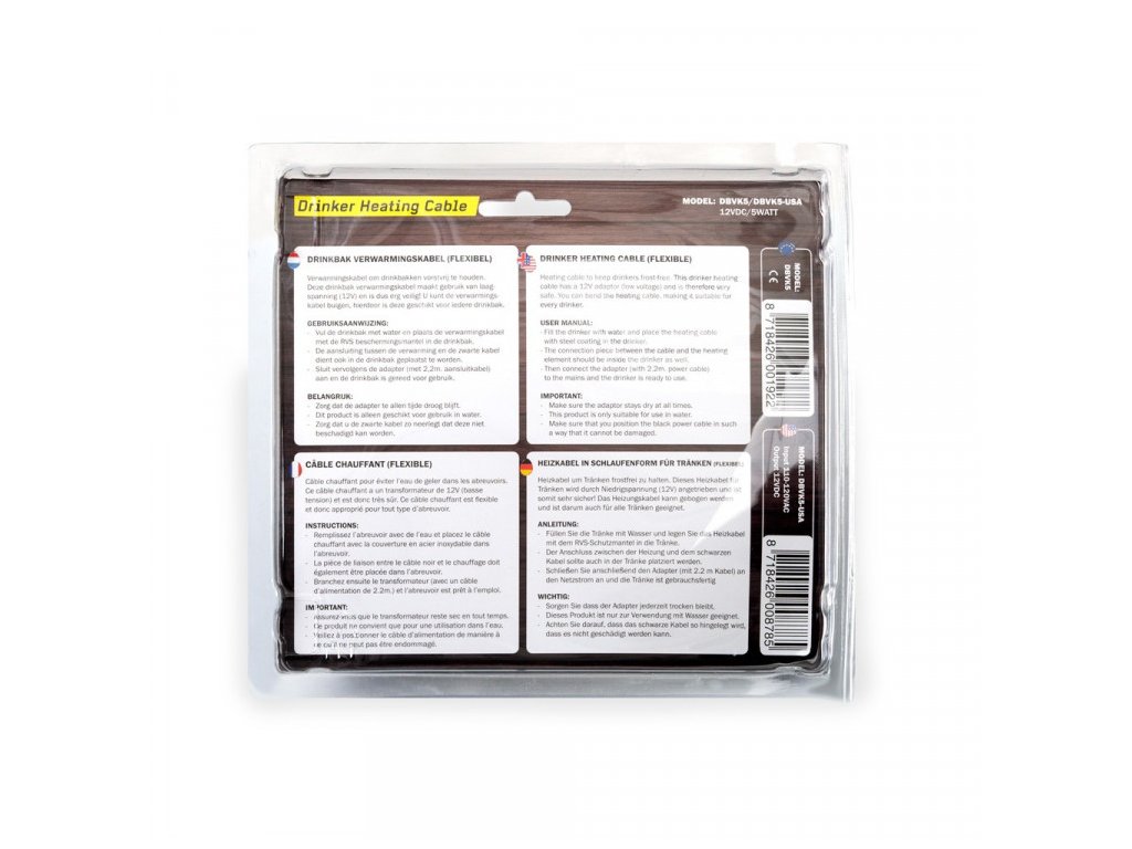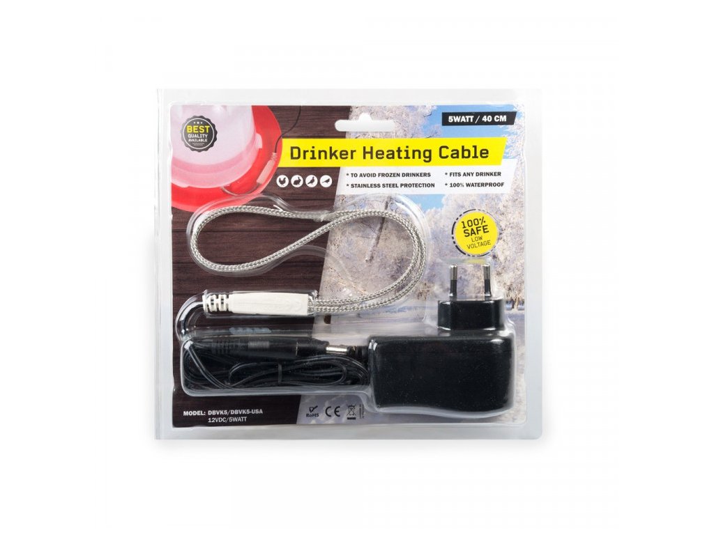Vyhrievací/vykurovací kábel 12 V / 12 W s adaptérom a nerezovou ochranou. Dĺžka vykurovacej časti je cca 80 cm (2×40 cm) a dĺžka kábla k vykurovacej časti je 2,2 metra....