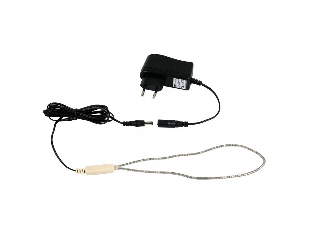 Vyhrievací kábel 12 V / 6 W s adaptérom, nerezové opletenie.