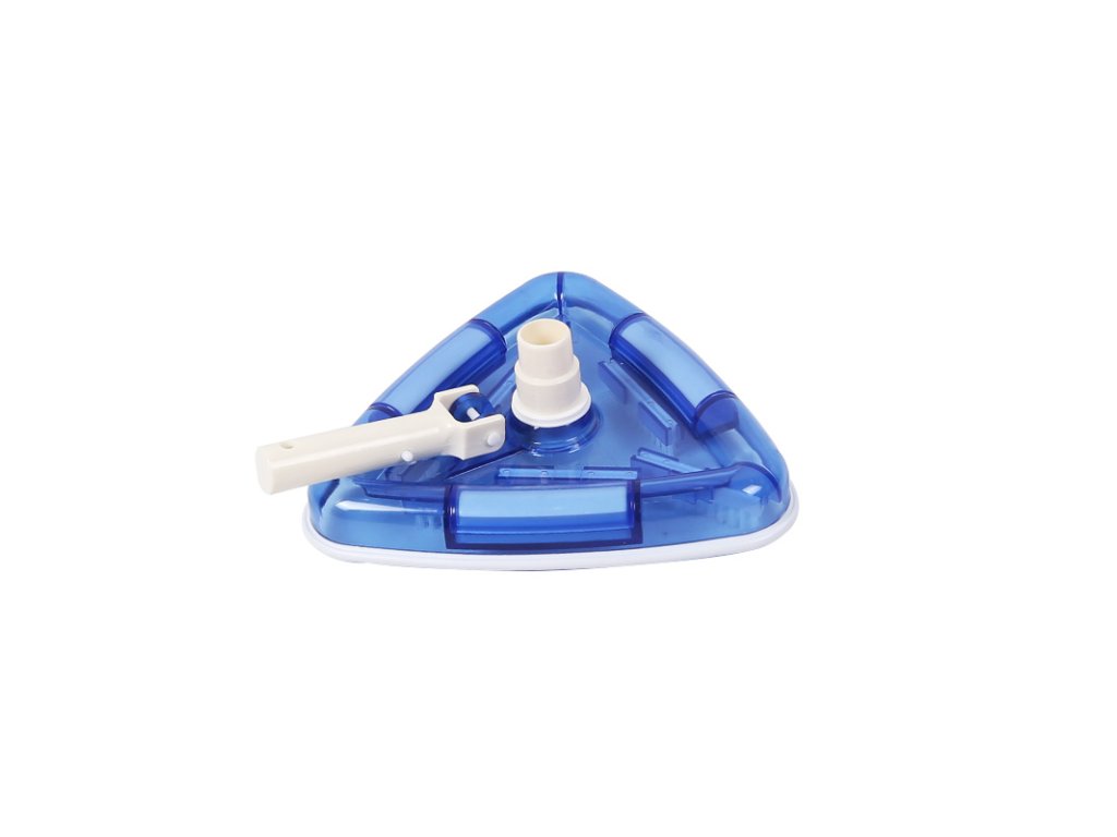 Vysávacia hlava Triangular transparent je určená na čistenie dna bazéna. Skvele vyčistí dno bazéna a to vďaka svojim spodným kefám. Tvar vysávača umožňuje dokonale vyčistiť rohy bazéna a ťažko dostupné miesta. Hlava má v sebe špeciálne liatinové závažie, vďaka ktorému je pri vysávaní bazéna stabilná a drží pri dne bazéna. Túto hlavu je možné pripojiť na štandardnú teleskopickú tyč a na vysávačovú hadicu s priemerom 32 a 38 mm (bazénová teleskopická tyč ani bazénová hadica nie je súčasťou balenia).
