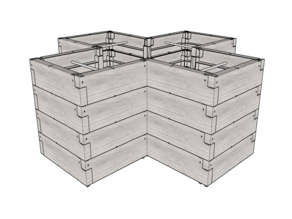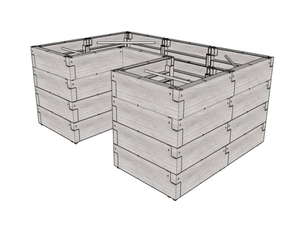 Dvojposchodový vyvýšený záhon JUWEL TIMBER ERGOLINE je zložený zo steny z dvoch vrstiev (poschodí) plastových „kameňov“. Každé poschodie je zložené z 12-tich „kameňov“. Môžete skladať 2× JUWEL TIMBER ERGOLINE do rôznych variantov zostáv. JUWEL TIMBER ERGOLINE nemá pevné dno.