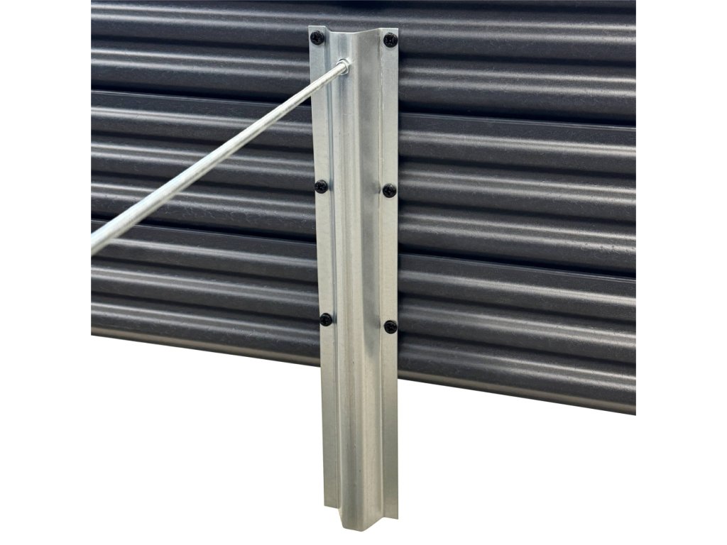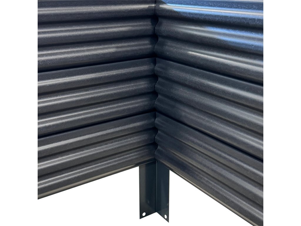 Nohy a priečka záhona sú vyrobené z pozinkovaného profilu, čo zaisťuje odolnosť proti korózii a dlhú životnosť. Vonkajšie nohy sú farebne prispôsobené bočniciam.