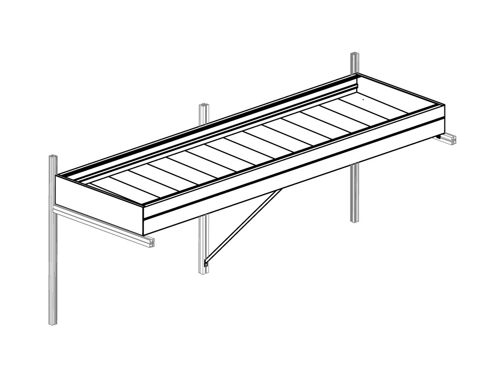 Praktický podnos na rostliny KGT je vyrobený z vysoce kvalitního hliníku a vede podél celé boční steny skleníku. Vysoce odolné plastové vložky možno jednotlive vyjmout a ľahko vyčistit. Vďaka inteligentnímu upevnenie k skleníku vydrží všechny nosné komponenty vysoké zatížení. Hloubka podnosu je približne 63,5 cm. Podnos na rostliny má tiež okr