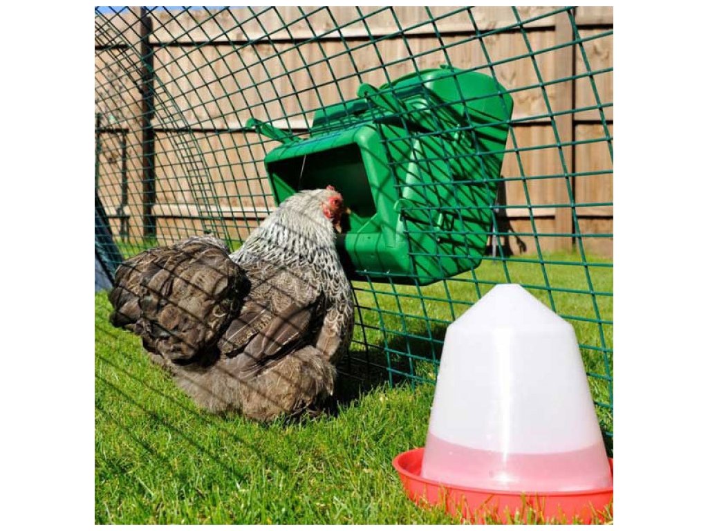 - kapacita: 5 l krmiva (zelená základná časť s držiakmi a otvorom) + 5 l krmiva (biely nadstavec)