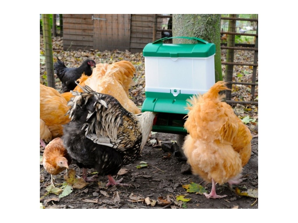 FEED-O-MATIC nášľapné kŕmidlo – 12 kg. Pri použití kŕmidla Feed-o-matic je potrava prístupná iba vtedy, keď sliepka stojí na nášľapnej plošine. Škodcovia ako hlodavce alebo...