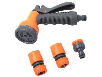 Set plastovej pištole s 8 funkciami a príslušenstvom AQUA je ideálnym doplnkom záhradnej hadice. Príslušenstvo: 1/2“ Rýchlospojka STOP, 1/2“ Rýchlospojka, 1/2" + 3/4" adaptér.