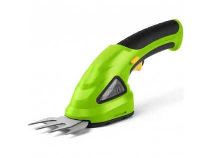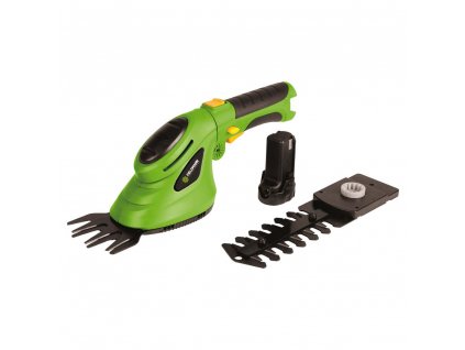 AKU nožnice na trávu a kríky s batériou Li-Ion 1 500 mAh a otočnou rukoväťou pre zastrihávanie konárov do priemeru 10 mm a 8 cm lištou pre úpravu okrasných trávnikov.