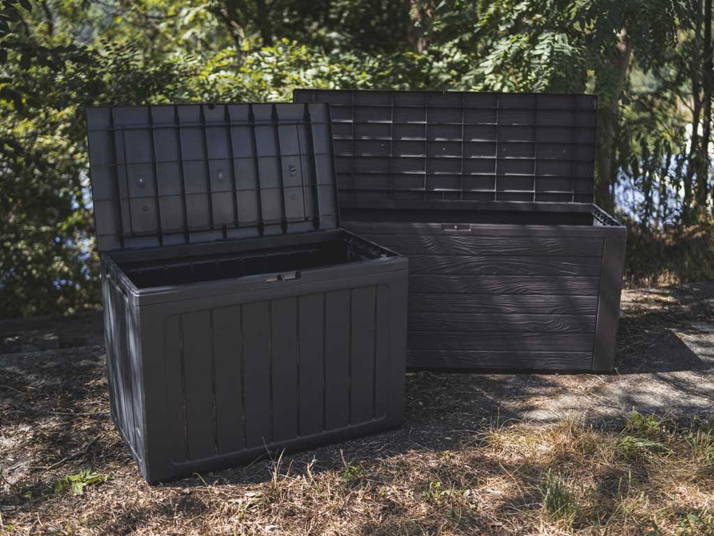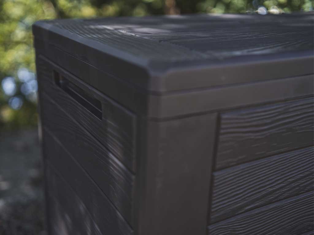 Box je ľahký, odvetraný a chráni uschované predmety pred prípadným dažďom. Ľahko v ňom uschováte vankúše zo záhradného nábytku, deky, záhradné potreby, menší nábytok alebo hračky pre deti. Možno ho zabezpečiť aj visiacim zámkom a zamknúť cennejšie veci vo vnútri.