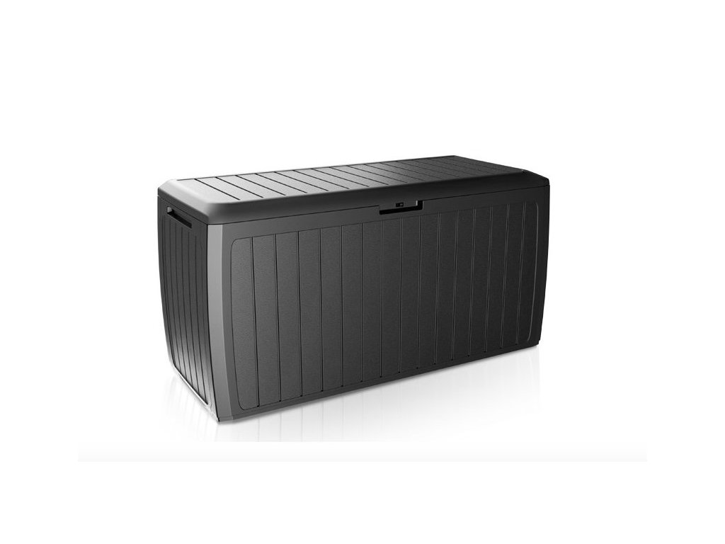 Box je ľahký, odvetraný a chráni uschované predmety pred prípadným dažďom. Ľahko v ňom uschováte vankúše zo záhradného nábytku, deky, záhradné potreby, menší nábytok alebo hračky pre deti. Možno ho zabezpečiť aj visiacim zámkom a zamknúť cennejšie veci vo vnútri.
