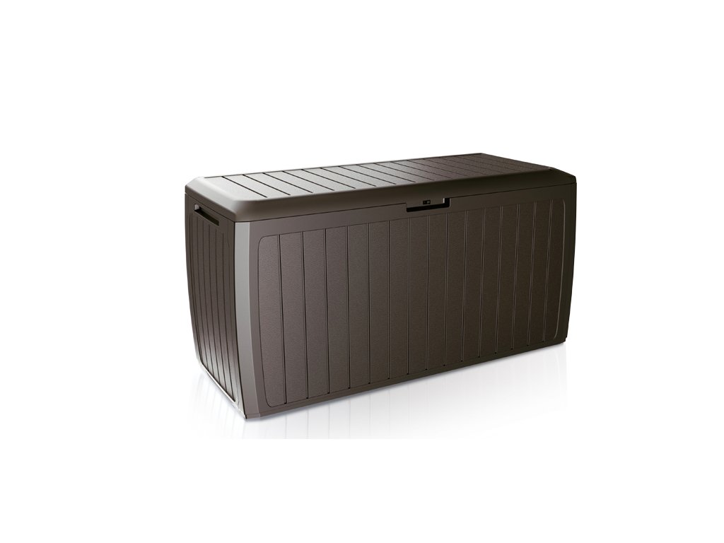 Box je ľahký, odvetraný a chráni uschované predmety pred prípadným dažďom. Ľahko v ňom uschováte vankúše zo záhradného nábytku, deky, záhradné potreby, menší nábytok alebo hračky pre deti. Možno ho zabezpečiť aj visiacim zámkom a zamknúť cennejšie veci vo vnútri.