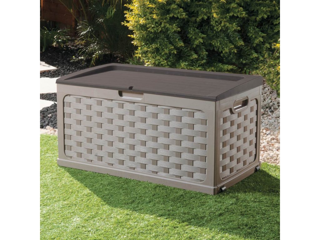 Dizajnový plastový záhradný box s ratanovou výplňou sa skvele hodí na ukladanie poťahov záhradného nábytku a náradia. Možno ho použiť v interiéri aj exteriéri - ideálne sa hodí pre použitie v garáži, na balkóne či terase. Box môžete vďaka kolieskam jednoducho premiestniť a dá sa tiež využiť ako príležitostné miesto na sedenie. Výhodou plastového boxu je, že nekoroduje.
