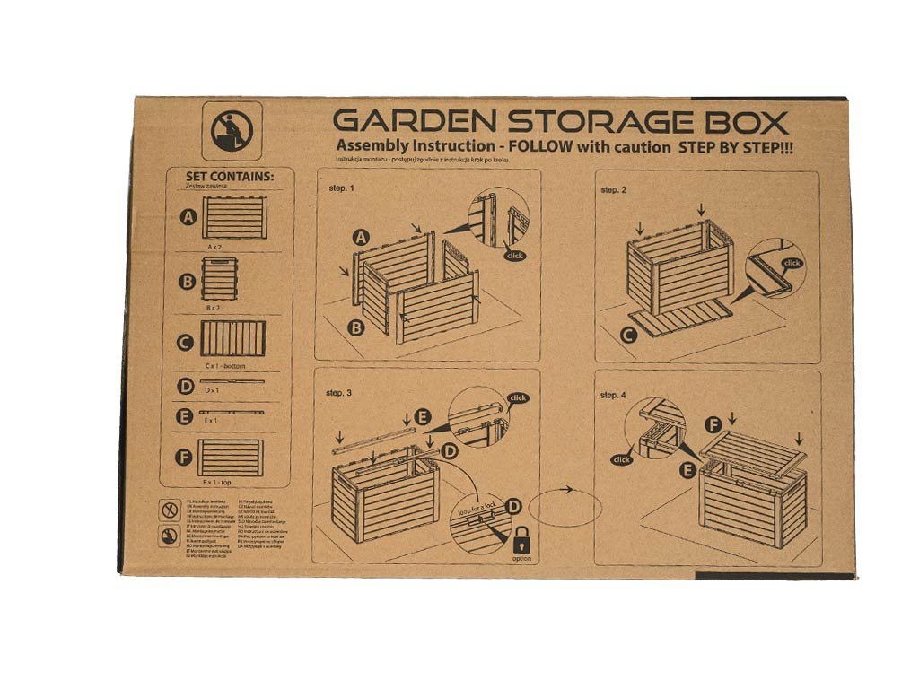 Box je ľahký, odvetraný a chráni uschované predmety pred prípadným dažďom. Ľahko v ňom uschováte vankúše zo záhradného nábytku, deky, záhradné potreby, menší nábytok alebo hračky pre deti. Možno ho zabezpečiť aj visiacim zámkom a zamknúť cennejšie veci vo vnútri.