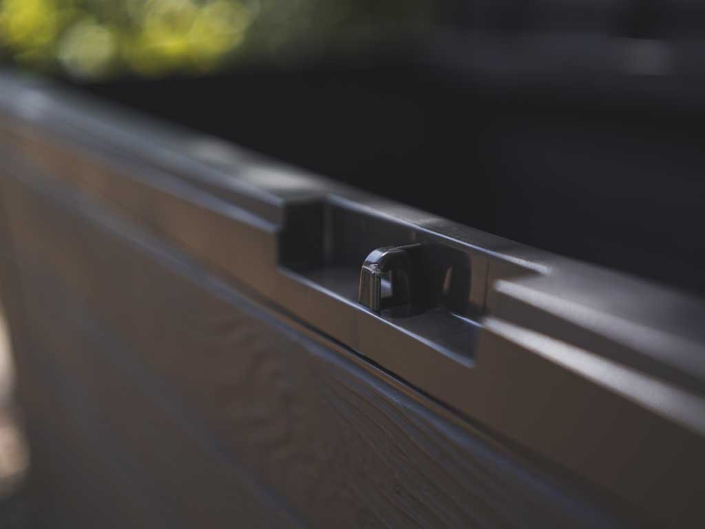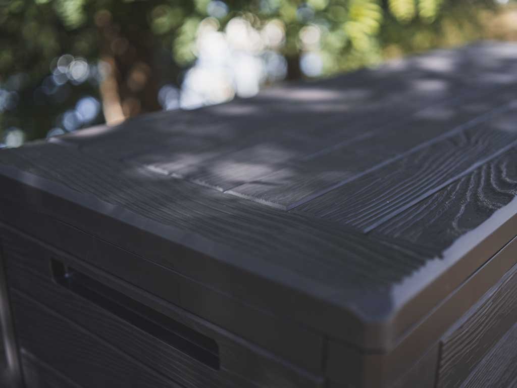 Box je ľahký, odvetraný a chráni uschované predmety pred prípadným dažďom. Ľahko v ňom uschováte vankúše zo záhradného nábytku, deky, záhradné potreby, menší nábytok alebo hračky pre deti. Možno ho zabezpečiť aj visiacim zámkom a zamknúť cennejšie veci vo vnútri.