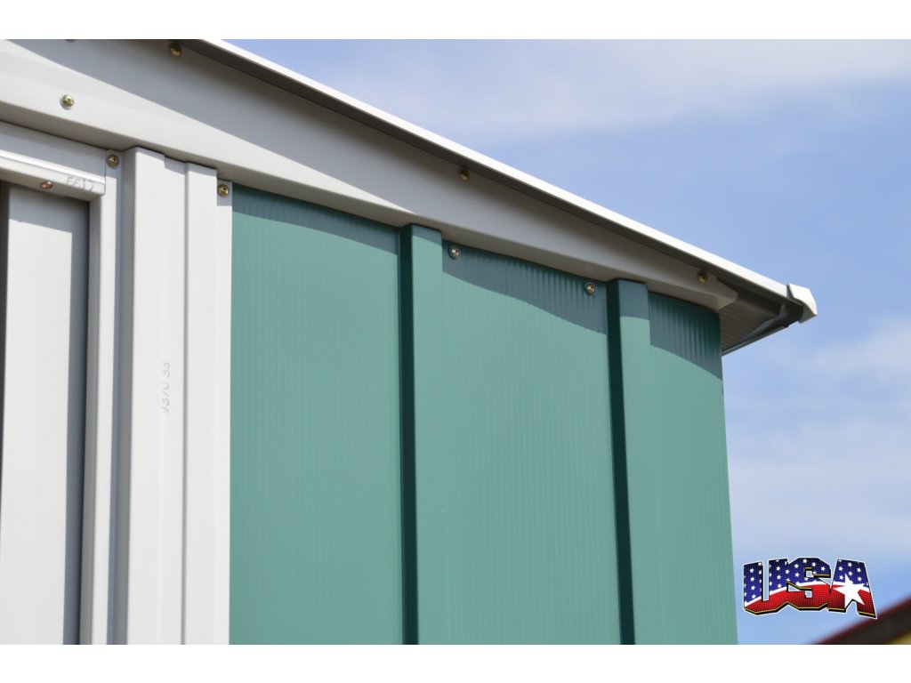Steny záhradného domčeka sú vyrobené z kvalitného profilovaného oceľového plechu hrúbky 0,22 - 0,35 mm a konštrukcia z pozinkovaného plechu o hrúbke 0,36 - 0,40 mm. Strecha a časti podlahovej konštrukcie sú žiarovo pozinkované, steny a zbytok konštrukcie prešli elektrolytickým zinkovaním. Všetky nalakované diely sú opatrené kvalitnou polyesterovou farbou. Vďaka tomu je domček odolný voči nepriaznivému počasiu a je možné ho používať po celý rok. Aj preto výrobca poskytuje záruku 10 rokov proti prehrdzaveniu.