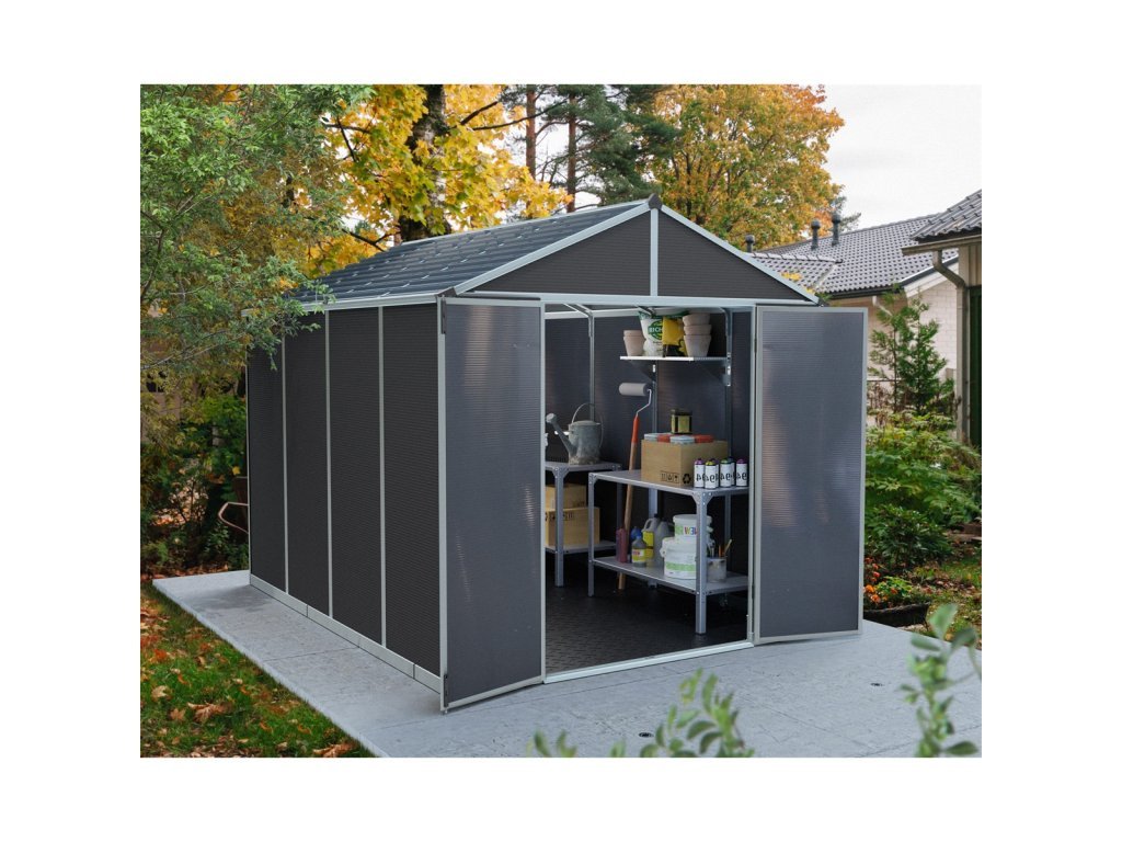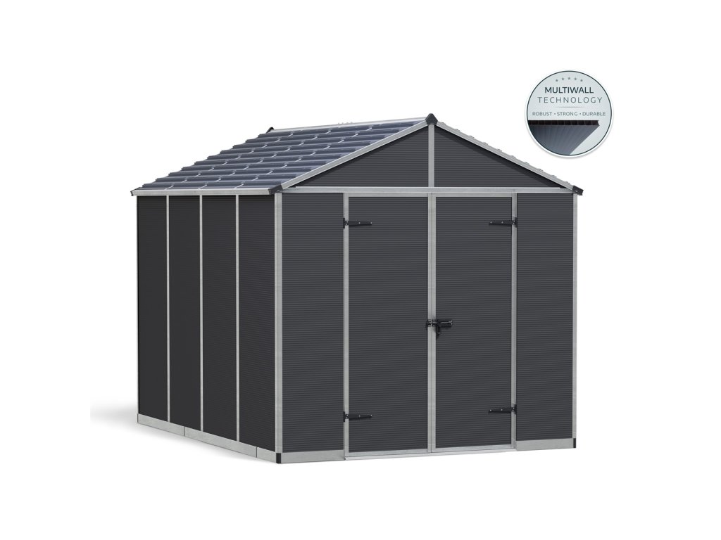 Zaobstarajte si priestranný a odolný záhradný domček PALRAM Canopia Rubicon 8' x 10' v modernej antracitovej farbe, ktorý vám poskytne bezpečné a štýlové úložné miesto. Tento domček je ideálny pre každú záhradu vďaka svojej robustnej konštrukcii, jednoduchej údržbe a elegantnému dizajnu.
