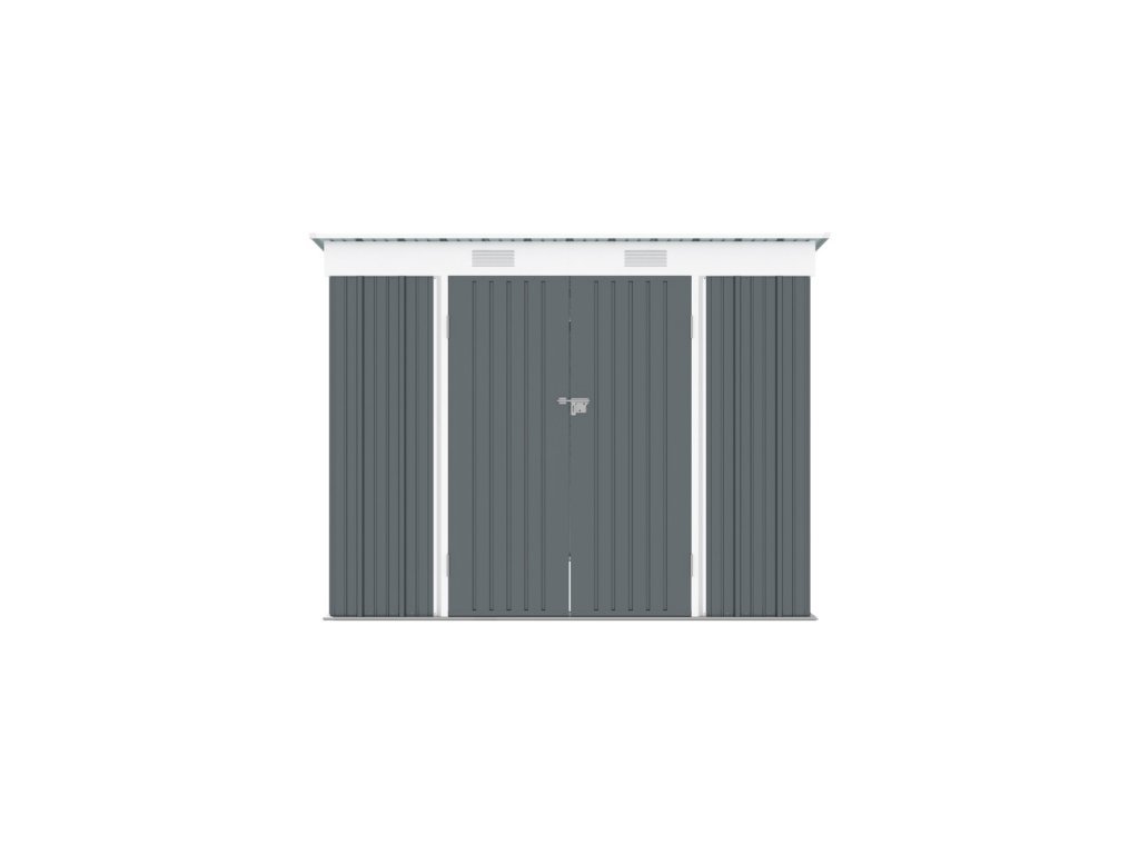 Pultová strecha domčeka je nielen estetická, ale aj praktická – jej sklon umožňuje efektívny odvod vody a snehu, čím minimalizuje zaťaženie konštrukcie. Dva integrované ventilačné otvory zabezpečujú optimálnu cirkuláciu vzduchu a chránia uložené predmety pred vlhkosťou a kondenzáciou.