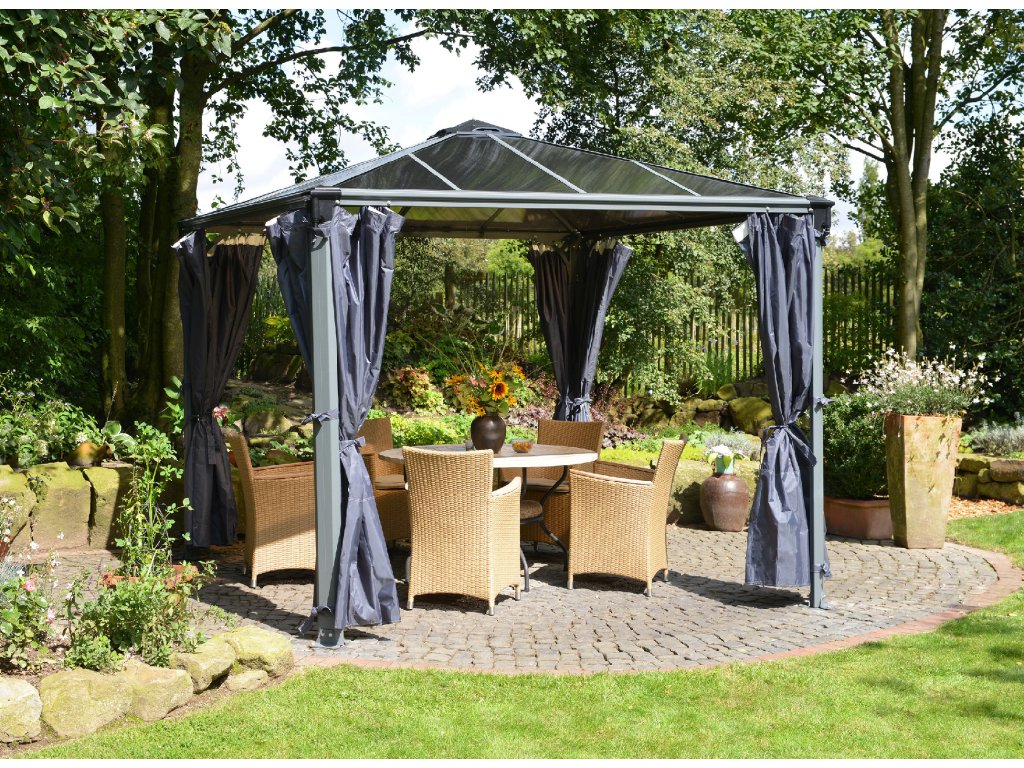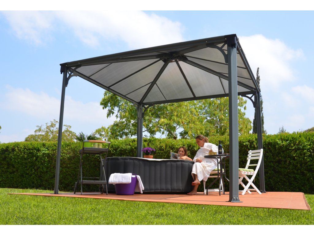 Palermo 3000 hliníkový altán od značky PALRAM Palermo je vhodný na krytie vonkajšieho posedenia, grilu alebo vonkajšej vírivky. Tieto altány majú robustnú konštrukciu a strechu zloženú zo 6 mm hrubých dvojkomorových polykarbonátových panelov, ktoré dokonale chránia pred nepriaznivým počasím, vrátane dažďa, krupobitia, snehu a škodlivého UV žiarenia. Hliníková konštrukcia je v antracitovej farbe.