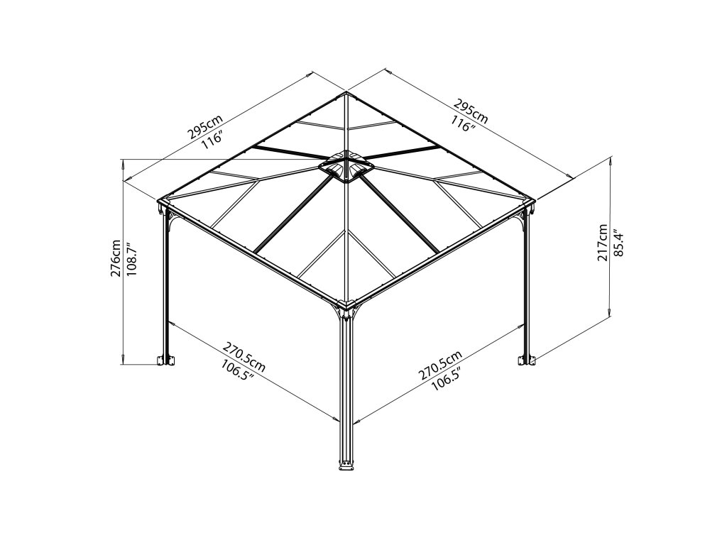 | Rozmery altánku (D x Š x V): | 295 x 295 x 276 cm |