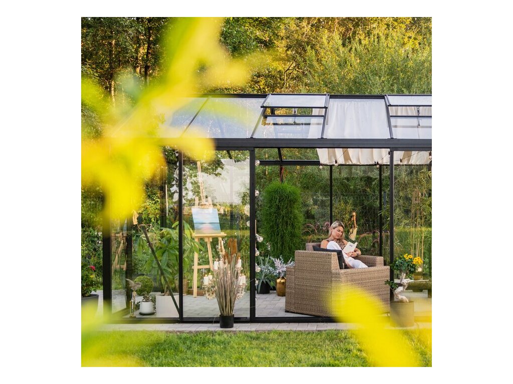 Základ skleníku tvorí lehká, ale pevná a propracovaná konštrukcie z hliníkových profilov, ktoré sú prirodzene odolné voči korozi, dlhodobo nenáročné na údržbu a dobre snášejí bežné venkovní podmínky. Hliník zároveň umožňuje presné lícování dílu, volbu rôznych typu zasklení a prispôsobenie konštrukcie i vzhledu podle individuálních potreb. Výsledkem je stabilné a prvotriedny vykonanie, doložené 12letou zárukou na hliníkový rám, použitím systémových extrudovaných profilov a integrovaným okapovým systémem, ktorý zvyšuje tuhost celé konštrukcie.