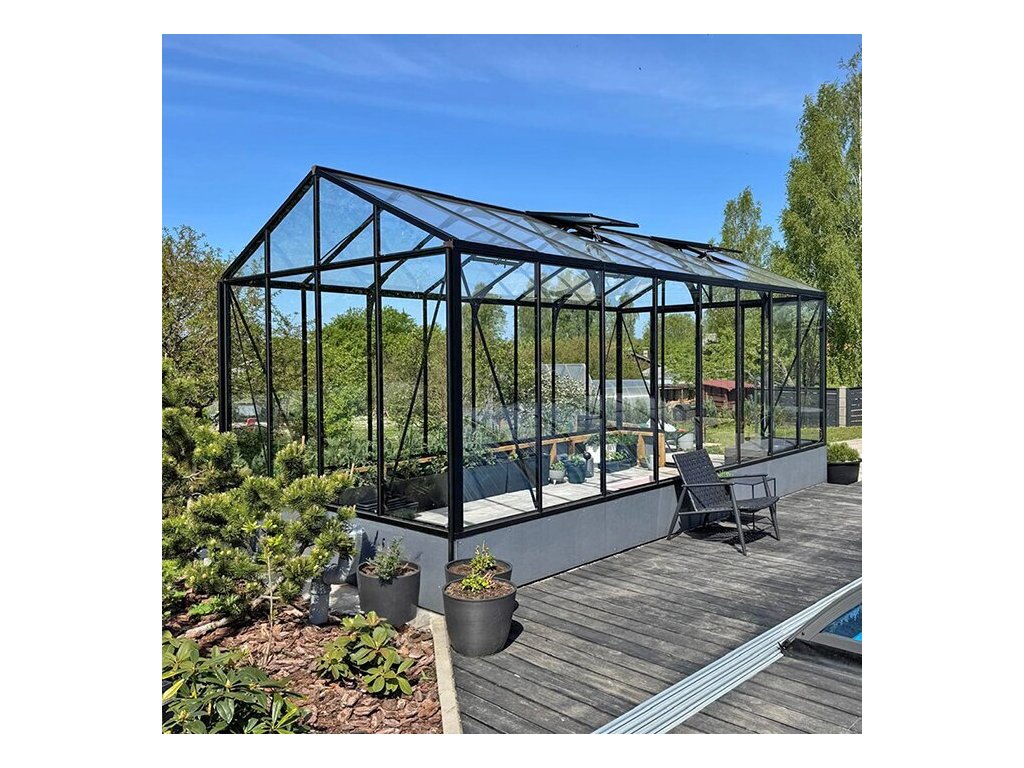 Základ skleníku tvorí lehká, ale pevná a propracovaná konštrukcie z hliníkových profilov, ktoré sú prirodzene odolné voči korozi, dlhodobo nenáročné na údržbu a dobre snášejí bežné venkovní podmínky. Hliník zároveň umožňuje presné lícování dílu, volbu rôznych typu zasklení a prispôsobenie konštrukcie i vzhledu podle individuálních potreb. Výsledkem je stabilné a prvotriedny vykonanie, doložené 12letou zárukou na hliníkový rám, použitím systémových extrudovaných profilov a integrovaným okapovým systémem, ktorý zvyšuje tuhost celé konštrukcie.