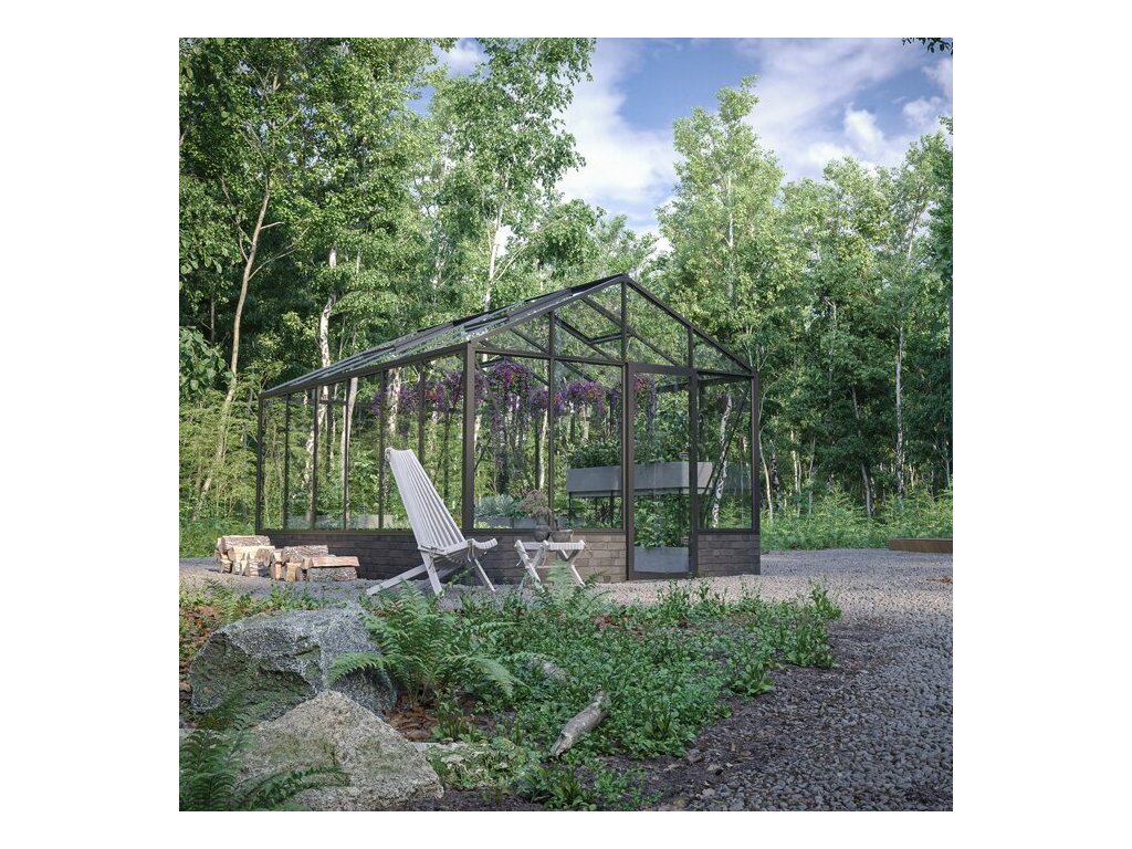 Základ skleníku tvorí lehká, ale pevná a propracovaná konštrukcie z hliníkových profilov, ktoré sú prirodzene odolné voči korozi, dlhodobo nenáročné na údržbu a dobre snášejí bežné venkovní podmínky. Hliník zároveň umožňuje presné lícování dílu, volbu rôznych typu zasklení a prispôsobenie konštrukcie i vzhledu podle individuálních potreb. Výsledkem je stabilné a prvotriedny vykonanie, doložené 12letou zárukou na hliníkový rám, použitím systémových extrudovaných profilov a integrovaným okapovým systémem, ktorý zvyšuje tuhost celé konštrukcie.